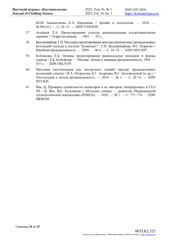39. Коблякова, Е.Б. Основы проектирования рациональных размеров и формы одежды / Е.Б. Коблякова. - Москва: Легкая и пищевая промышленность, 1984. - 207 с. EDN: OELXVP