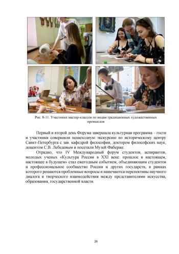 В статье дается обзор основных событий, состоявшихся в Высшей школе народных искусств (академии) в рамках проведения IV Международного форума студентов, аспирантов, молодых ученых «Культура России в XXI веке: прошлое в настоящем, настоящее в будущем» 23-24 мая 2024 г. - выставок, мастер-классов, пленарного и секционных заседаний, паблик-токов. Выявлены ключевые направления дискуссий, сформулированы главные результаты работы Форума.