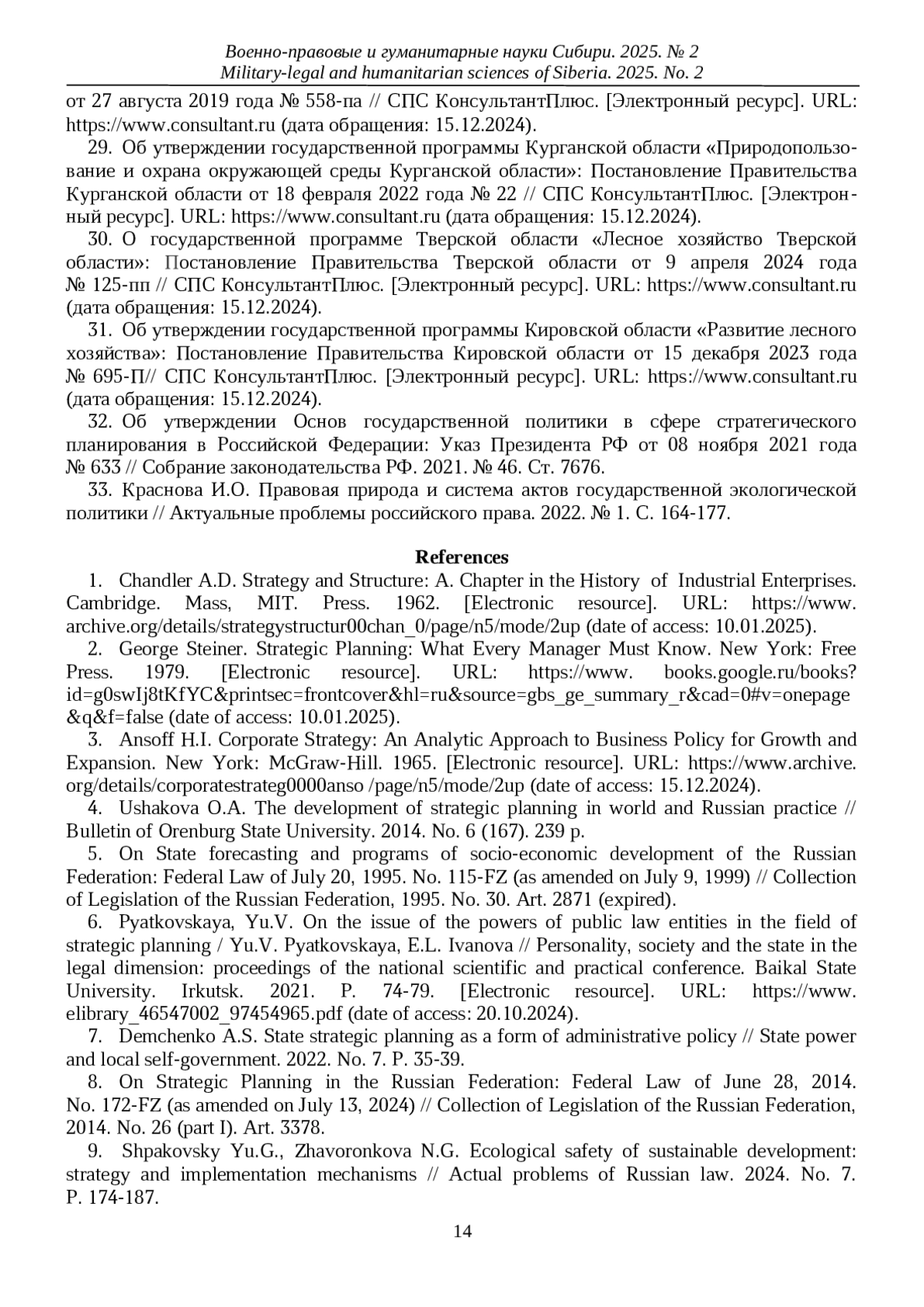 32. Об утверждении Основ государственной политики в сфере стратегического планирования в Российской Федерации: Указ Президента РФ от 08 ноября 2021 года № 633 // Собрание законодательства РФ. 2021. № 46. Ст. 7676.
