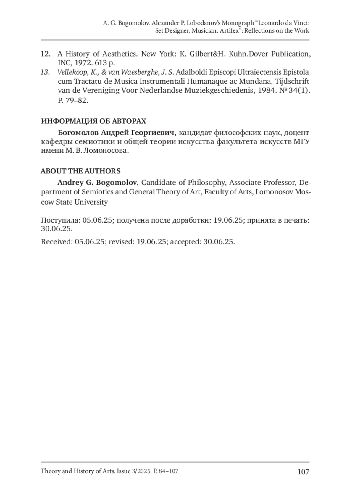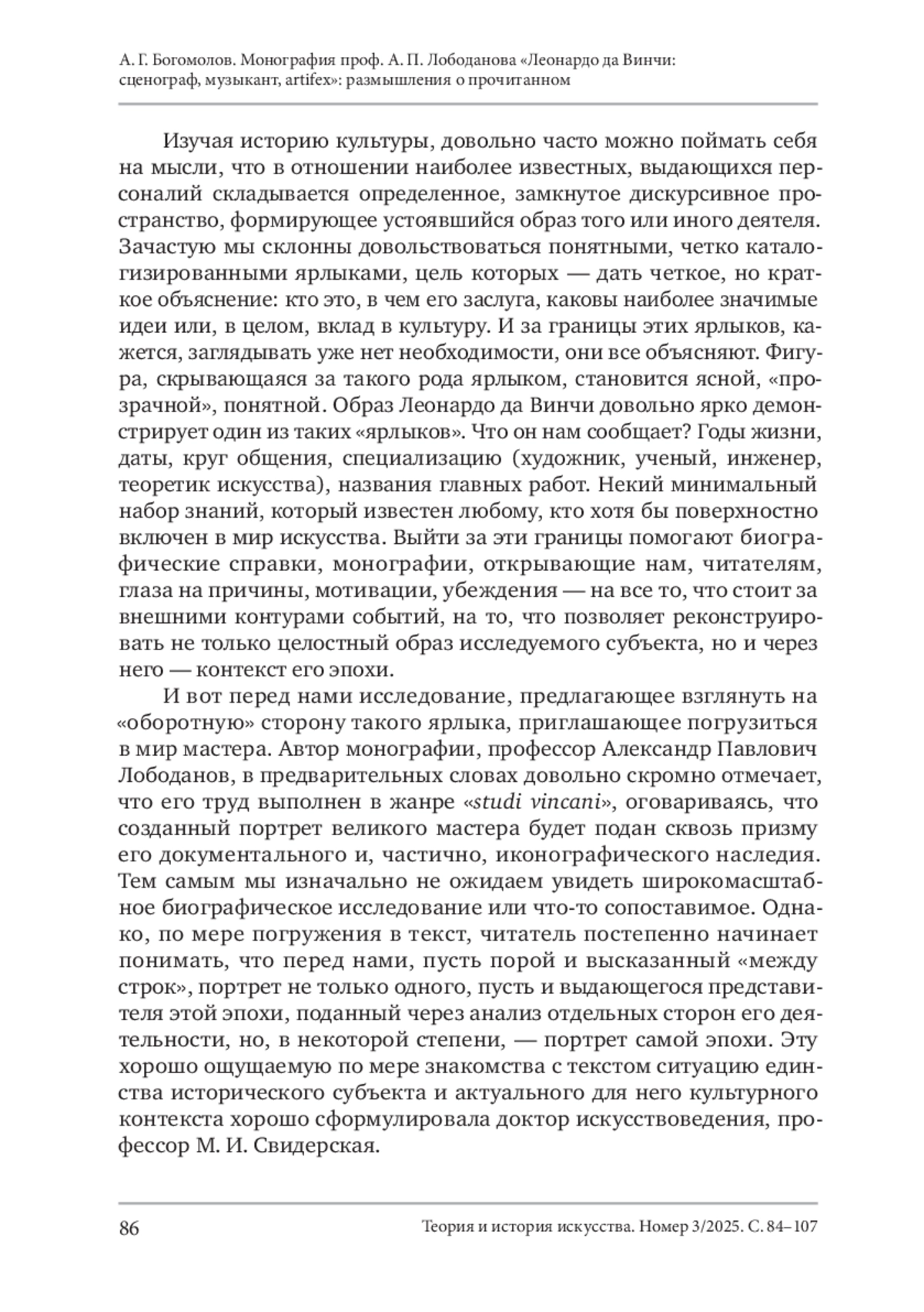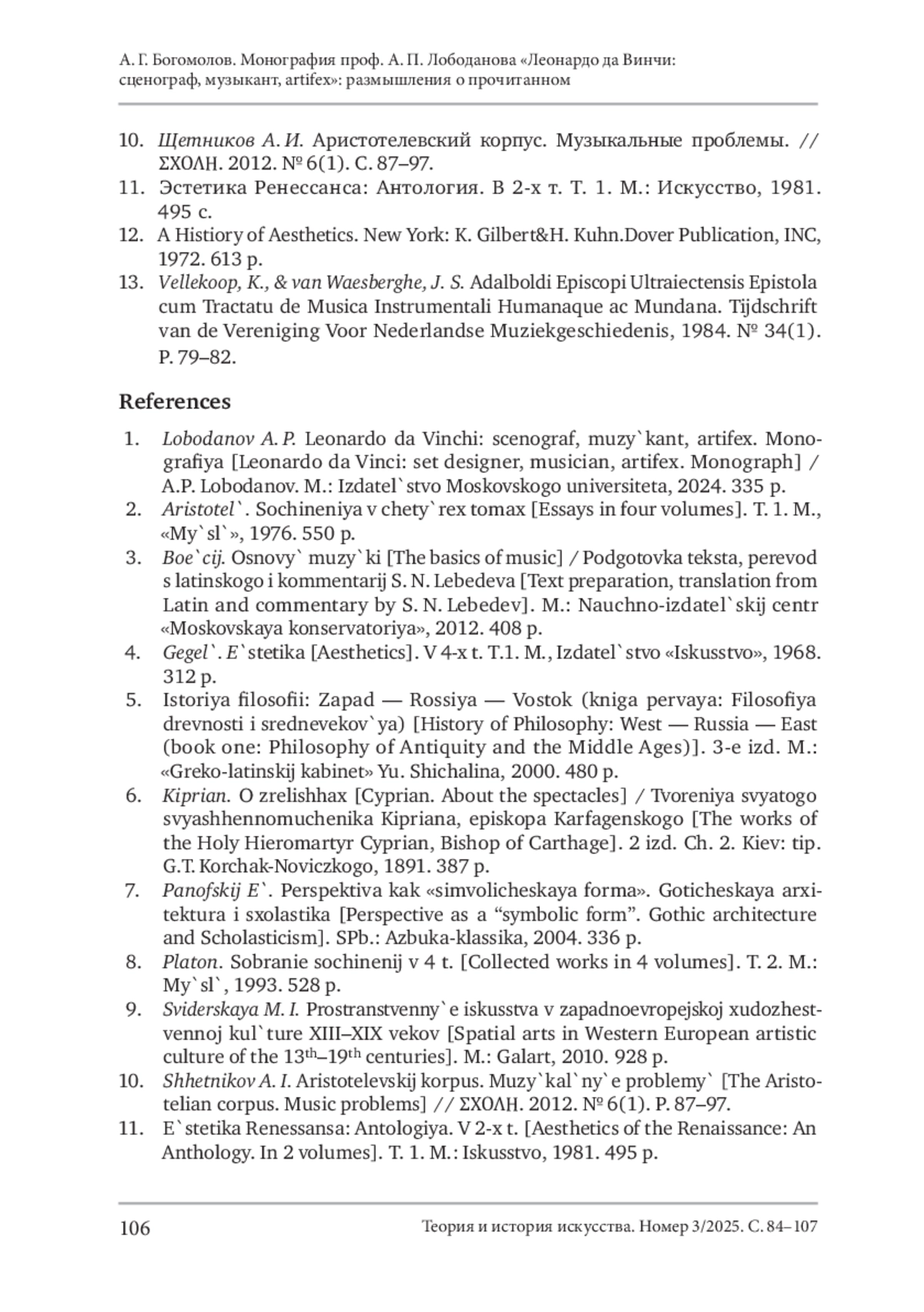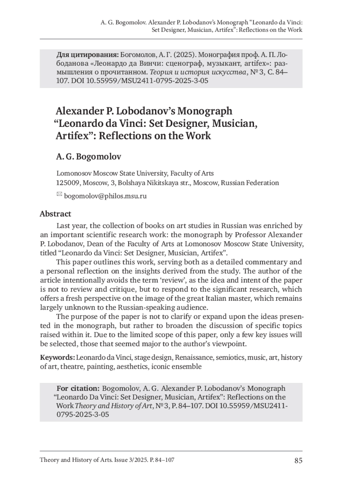 Богомолов, А. Г. (2025). Монография проф. А. П. Лободанова «Леонардо да Винчи: сценограф, музыкант, artifex»: размышления о прочитанном. Теория и история искусства, No 3, С. 84–107. DOI 10.55959/MSU2411-0795-2025-3-05