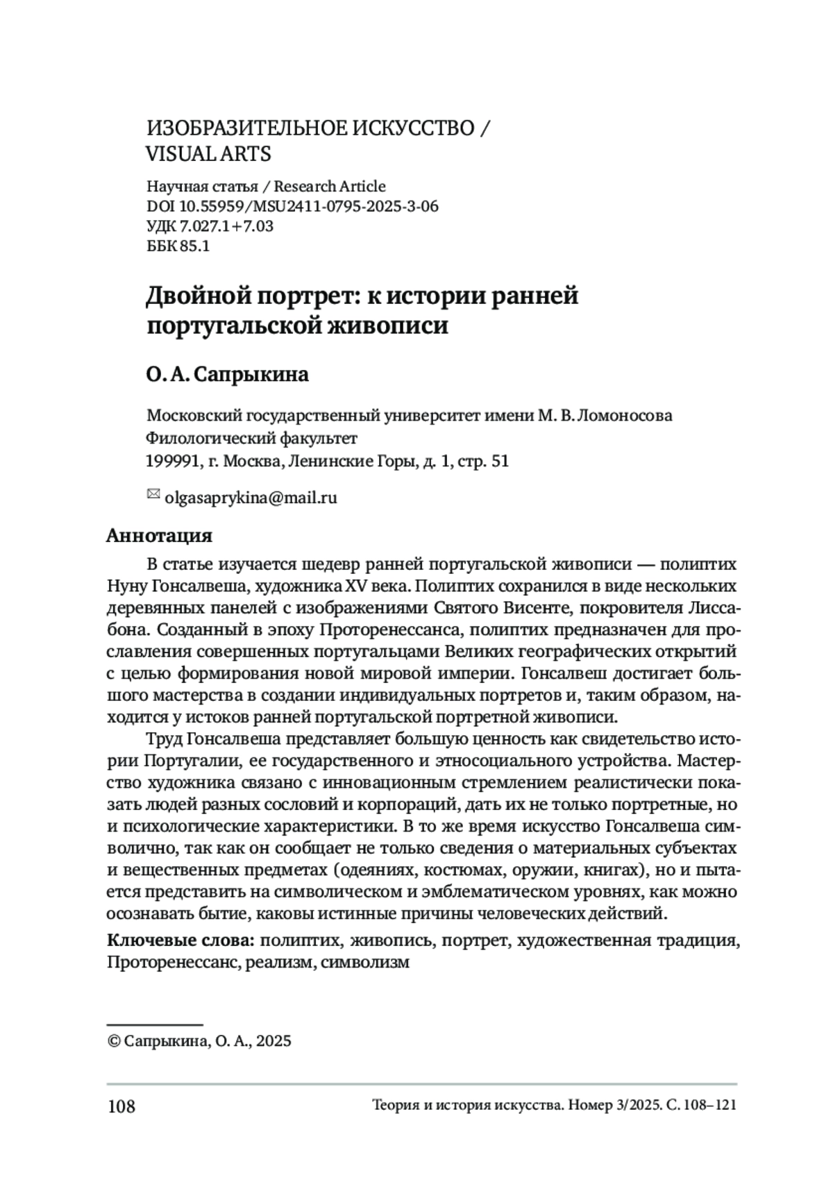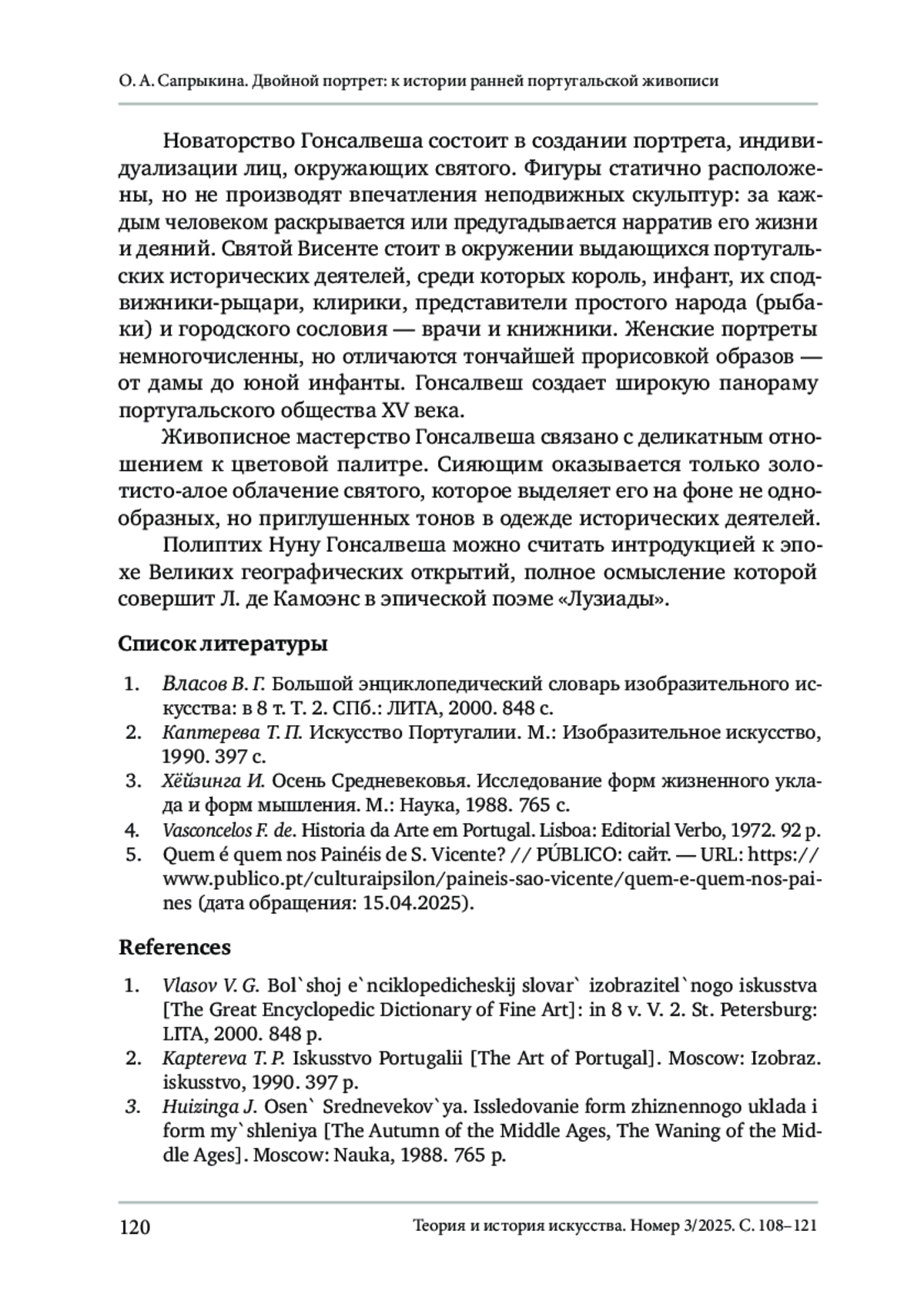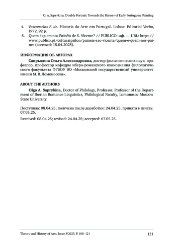 Сапрыкина, О.А. (2025). Двойной портрет: к истории ранней португальской живописи. Теория и история искусства, No 3, С. 108–121. DOI 10.55959/MSU2411-0795-2025-3-06