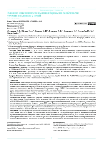 Цель: показать зависимости между симптомами, уровнем пыления березы и госпитализациями, изучить клинические характеристики березового поллиноза у детей города Рязани и Рязанской области в сезоне 2023 года в условиях интенсивного пыления березы (Betula).