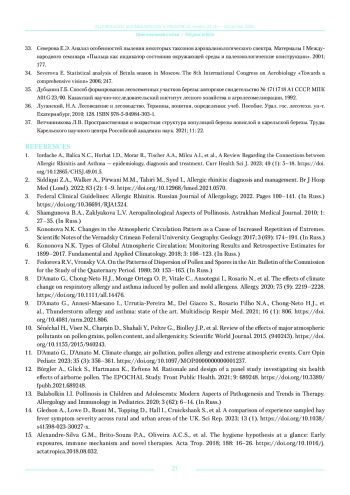 34. Severova E. Statistical analysis of Betula season in Moscow. The 8th International Congress on Aerobiology “Towards a comprehensive vision” 2006; 247.