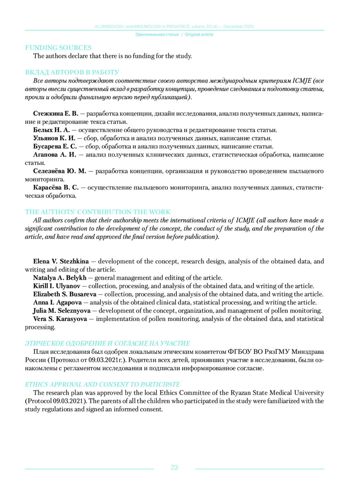 26. Карасева В.С., Селезнева Ю.М., Казакова М.В., Северова Е.Э. Фенологический анализ динамики пыления злаков в Рязани. Бюллетень. МОИП. Отд. биол. 2021; 126 (6): 18-28.