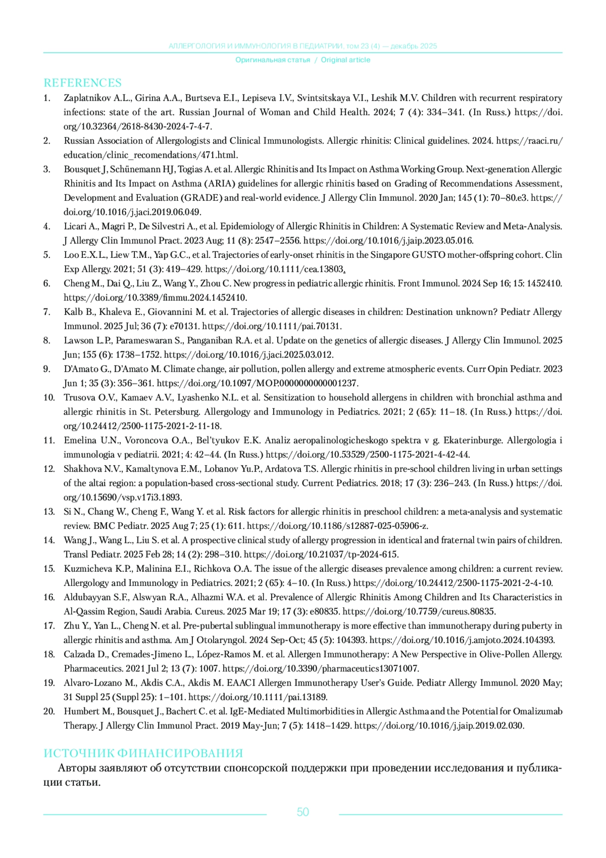 Журнал: АЛЛЕРГОЛОГИЯ И ИММУНОЛОГИЯ В ПЕДИАТРИИ