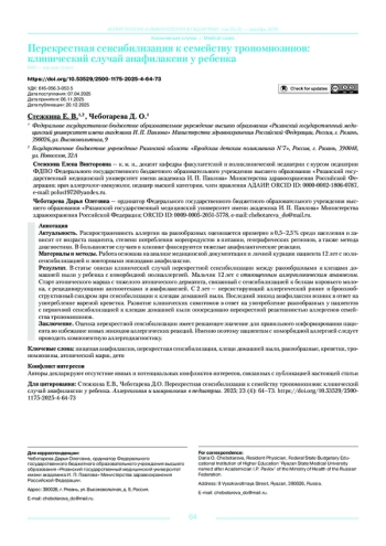 Заключение. Оценка перекрестной сенсибилизации имеет решающее значение для правильного информирования пациента во избежание новых эпизодов аллергических реакций. Именно поэтому пациентам с коморбидной аллергией следует проводить компонентную аллергодиагностику.