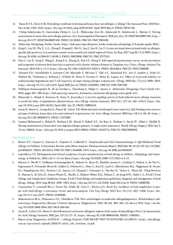 11. Diez S., Puerta L., Martínez D., Muñoz M., Hernández K., Sánchez J. Clinical Relevance of Shrimp Sensitization in Patients with Allergic Rhinitis: Anti-Der p 10 IgE as Predictor. Int Arch Allergy Immunol. 2021; 182 (10): 971-979. Epub 2021 Jun 4. PMID: 34091446. DOI: 10.1159/000516005 PMID: 34091446