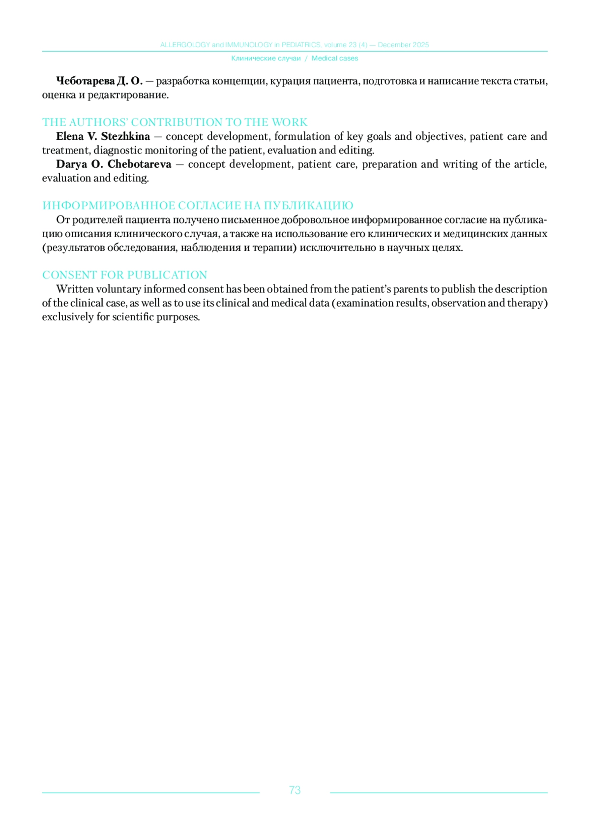8. Лепешкова Т.С., Андронова Е.В. Может ли компонентная аллергодиагностика помочь в установлении траектории формирования “атопического марша”? РМЖ. Медицинское обозрение. 2024; 8 (3): 163-170. DOI: 10.32364/2587-6821-2024-8-3-7/