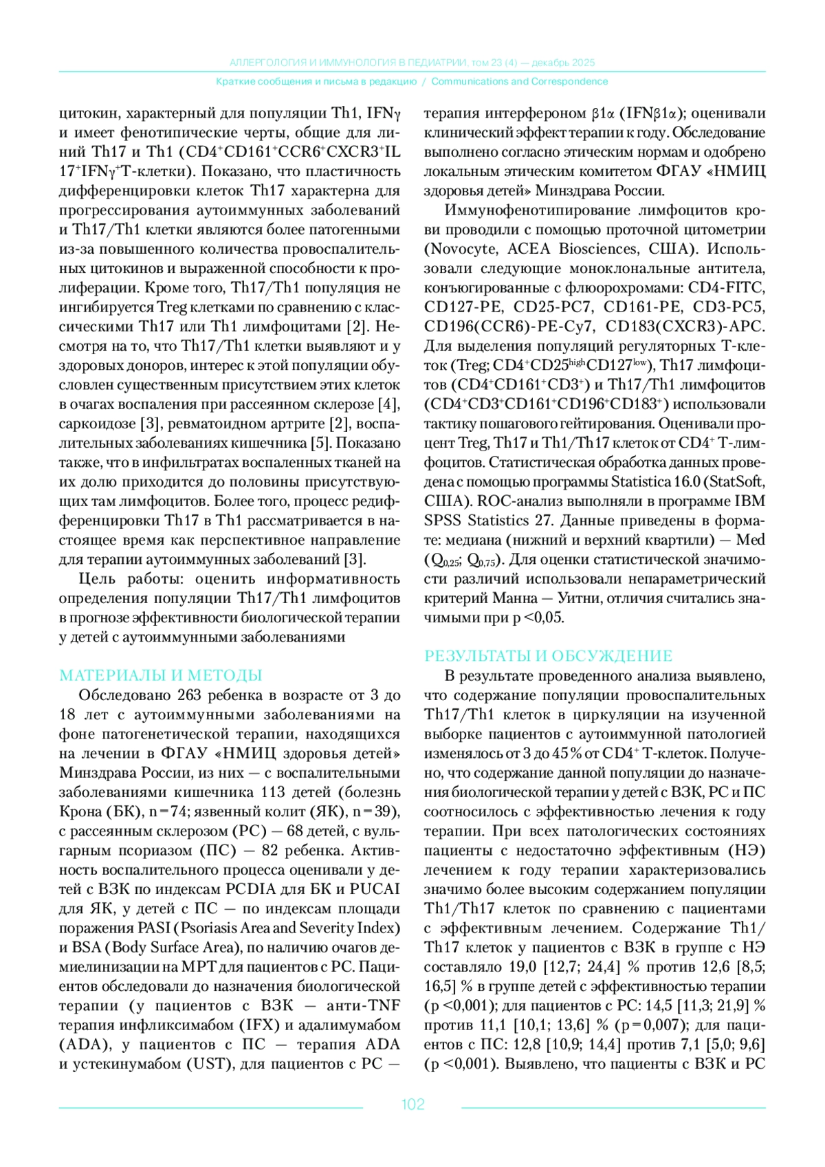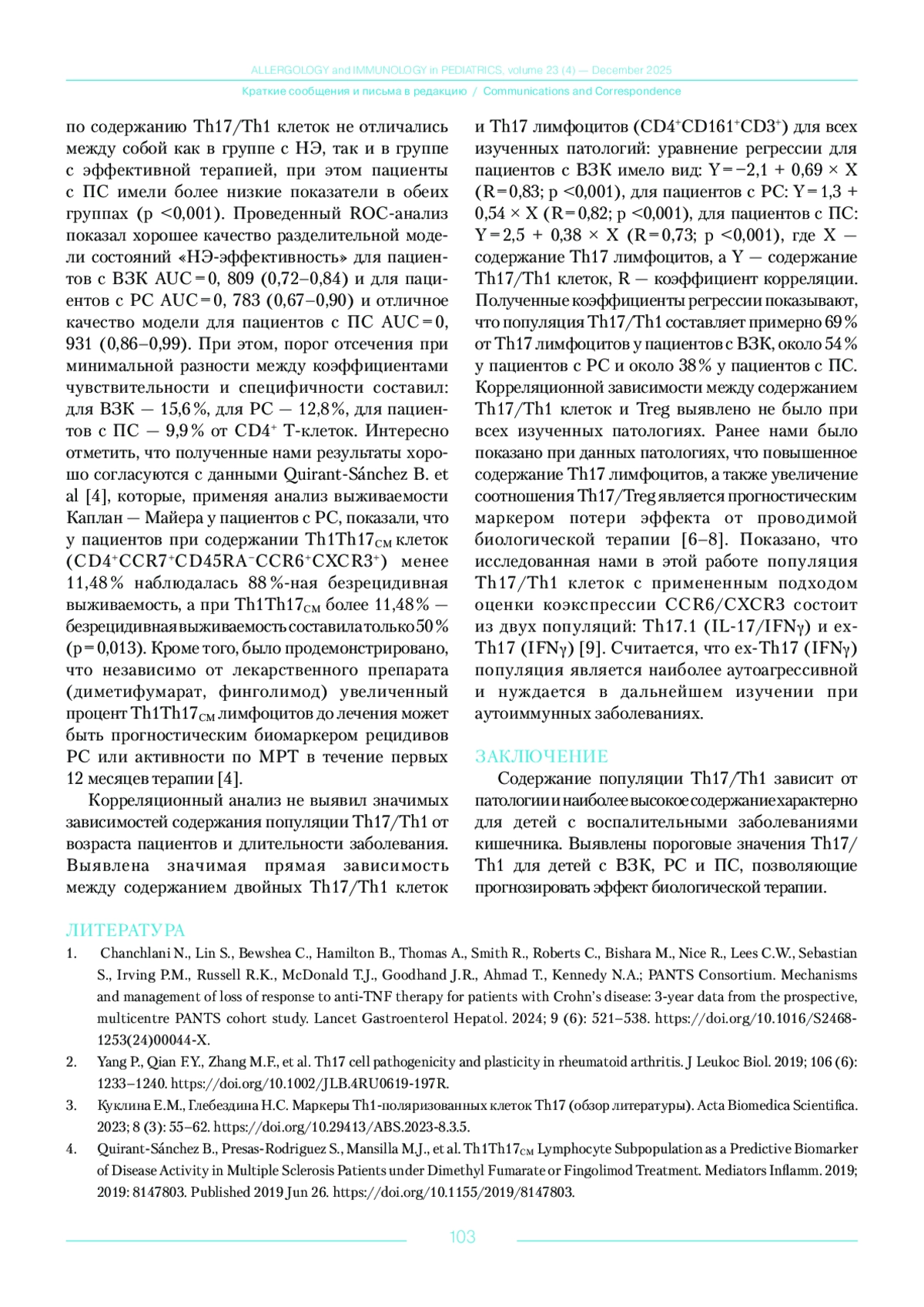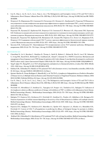 9. Куклина Е.М., Глебездина Н.С. Идентификация Th1-поляризованных клеток Th17: решение проблемы. Медицинская иммунология. 2023; 25 (4): 731-734.