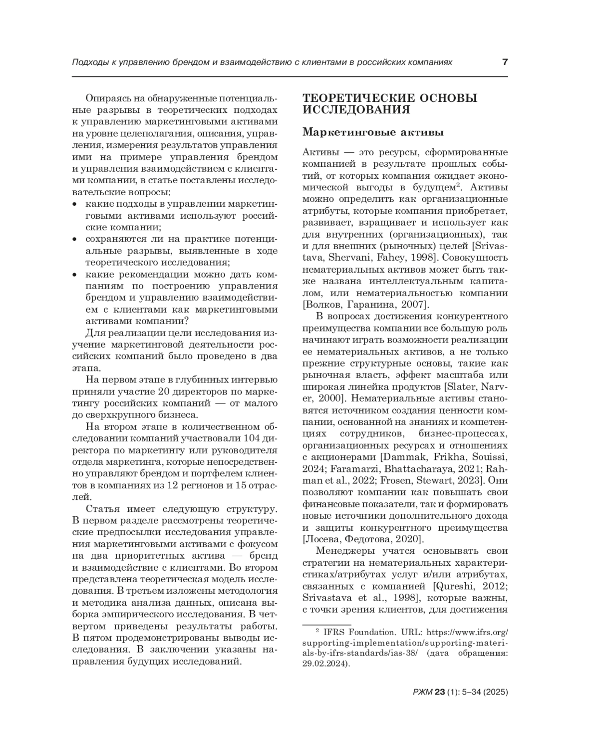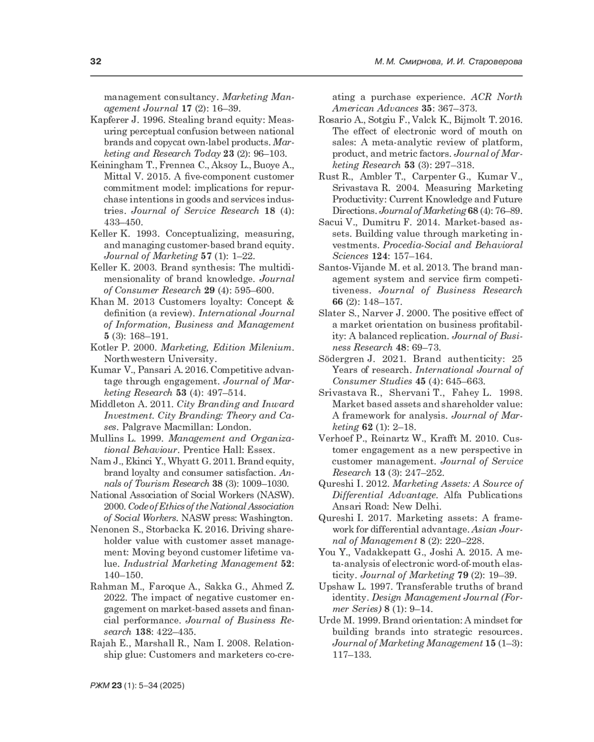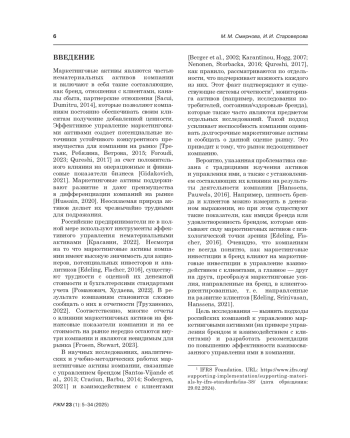 Маркетинговые активы являются частью нематериальных активов компании и включают в себя такие составляющие, как бренд, отношения с клиентами, каналы сбыта, партнерские отношения [Sacui, Dumitru, 2014], которые позволяют компаниям постоянно обеспечивать своим клиентам получение добавленной ценности.