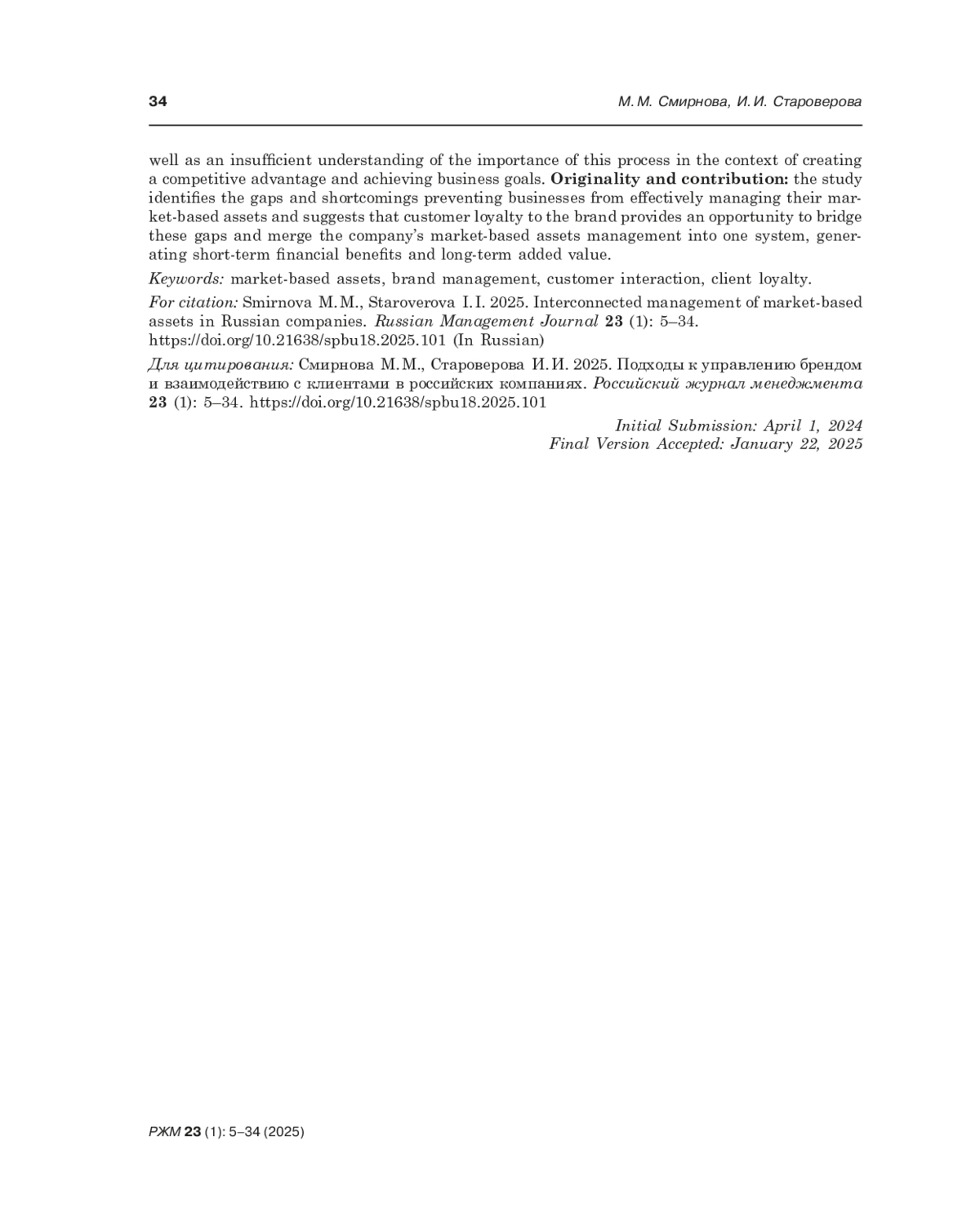 Оригинальность и значимость результатов: исследование дает возможность проиллюстрировать потенциальные несоответствия, или разрывы, в подходах к постановке целей, способах достижения и оценки успешности управления активами, не позволяющие представителям бизнеса полноценно управлять маркетинговыми активами. Кроме того, можно предположить, что лояльность клиента к бренду выступает значимым фактором, который способен как нивелировать данные разрывы, так и связать управление маркетинговыми активами компании в единую систему. Это не только принесет компании финансовую выгоду на коротком временном интервале, но и будет способствовать формированию высокой добавленной стоимости в долгосрочной перспективе.