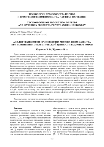19. Продуктивные качества коров на фоне применения минеральных кормовых добавок / О. В. Горелик, А. С. Горелик, Т. И. Урюмцева [и др.] // Аграрная наука. - 2024. - № 11. - С. 67-. DOI: 10.32634/0869-8155-2024-388-11-67-74