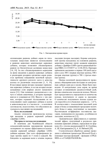 Цель скотоводства состоит в том, чтобы выращивать здоровых коров, способных максимально реализовать продуктивные возможности [17, 25]. В современных скотоводческих предприятиях внедряются инновации, направленные на оптимизацию производственных процессов с целью сокращения затрат времени за счет использования цифровых технологий [2], научно обоснованного подхода к формированию штатного расписания [6]. Вместе с тем увеличение объемов производства молока обеспечивается, прежде всего, ростом молочной продуктивности животных [15, 24].