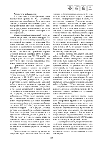 Представлены результаты, отражающие анализ технологии производства молока при введении в рацион энергетической кормовой добавки «Драйфат LS60». Препарат применяли коровам ежедневно в первые 100 дней лактации в дозе 300 г (первая опытная группа), 500 г (вторая опытная группа) и 700 г (третья опытная группа). Коровы, находящиеся на основном рационе, служили контролем. Определяли количество молока, молочного жира и белка, полученного от коров за лактацию. Рассчитывали коэффициент постоянства лактации, полноценности лактации, устойчивости лактации, молочности. Определяли экономическую эффективность применения кормовой добавки в разных дозах. Применение коровам кормовой добавки «Драйфат LS60» в первые 100 дней лактации в дозе 500 г и 700 г на голову в сутки способствует достоверному увеличению продуктивности на 5,90 % и 8,02 % соответственно, молочного жира – на 10,80 % и 11,05 %, белка – на 10,13 % и 10,70 %; в дозе 300 г на голову в сутки – оказывает положительный, но статистически недостоверный эффект. Введение в рацион коровам кормовой добавки «Драйфат LS60» в разных дозах способствует улучшению физико-химических свойств молока, но в незначительной степени: белка до 1,2 %, жира – на 3,66-8,38 %, СОМ – на 0,7 %. Экономическая эффективность мероприятий по ежедневному применению коровам в первые 100 дней лактации кормовой добавки «Драйфат LS60» в дозе 300 г на голову составила 0,83 руб. на один рубль затрат, в дозе 500 г на голову – 2,13 руб., в дозе 700 г на голову – 1,62 руб. С целью увеличения продуктивности коров рекомендуем применять коровам в первые сто дней лактации кормовую добавку «Драйфат LS60» индивидуально с кормом ежедневно в дозе 500 или 700 г на голову в сутки.