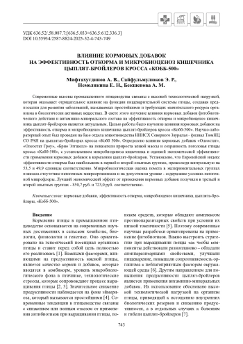 6. Нуралиев, Е. Р., Кочиш, И. И. Применение фитобиотика “Провитол” для улучшения конверсии корма в промышленном птицеводстве // Вестник Алтайского государственного аграрного университета. 2017. № 8(154). С. 112-117.