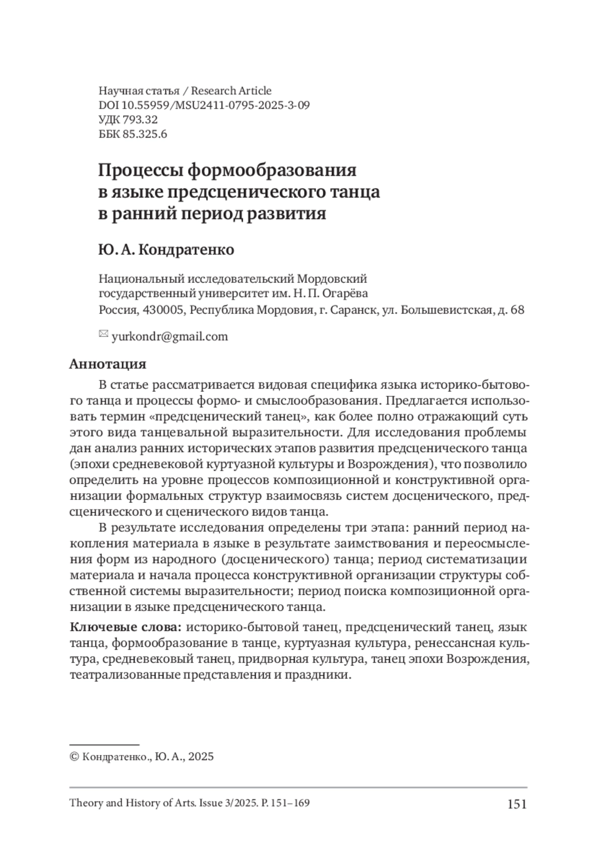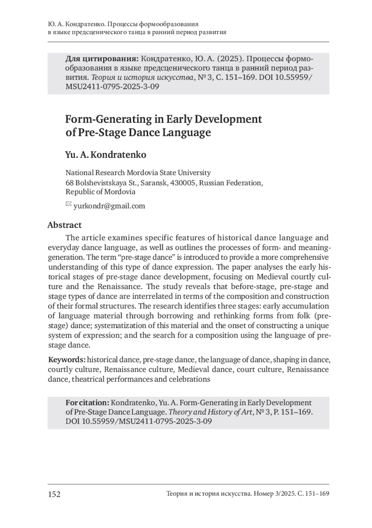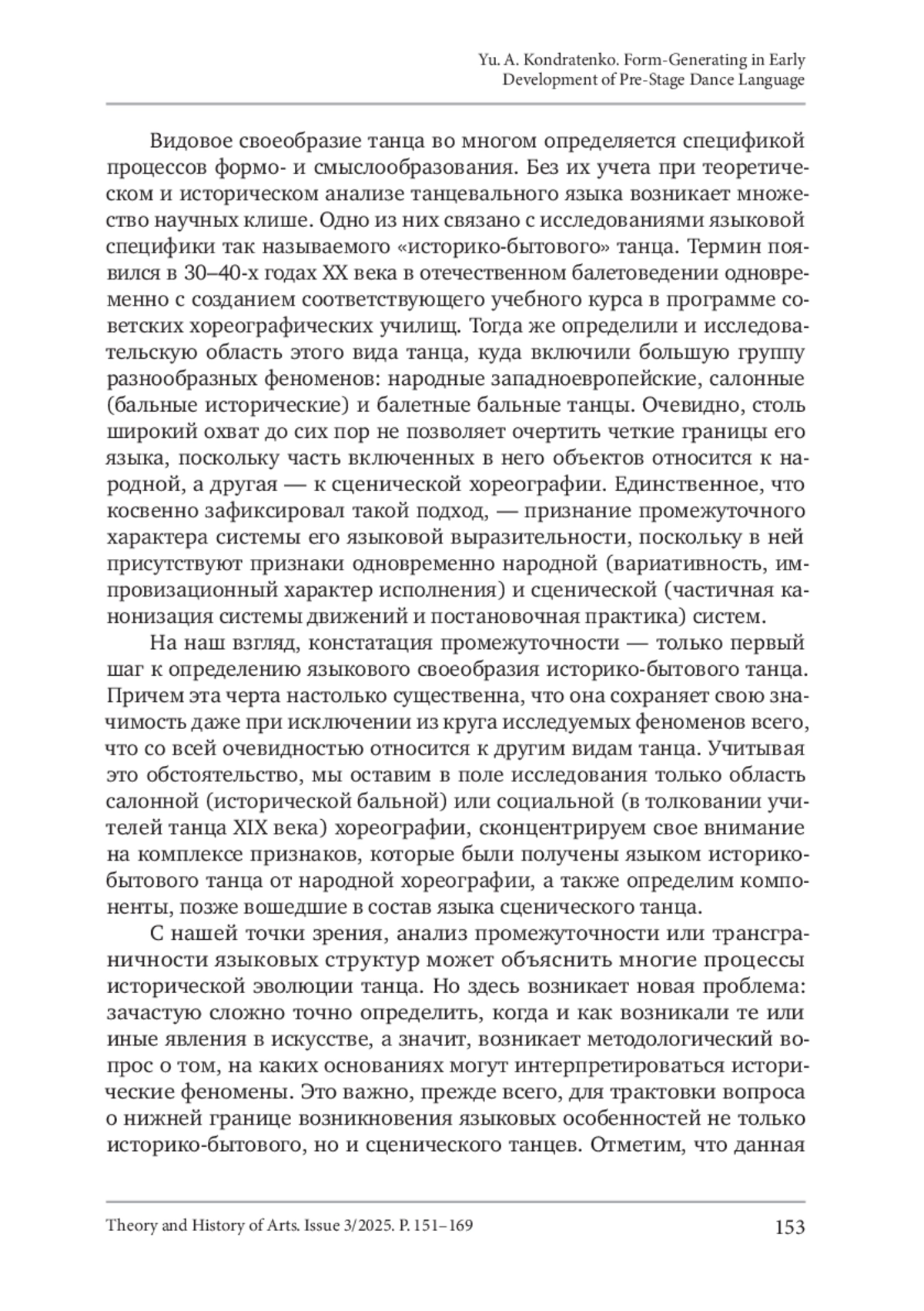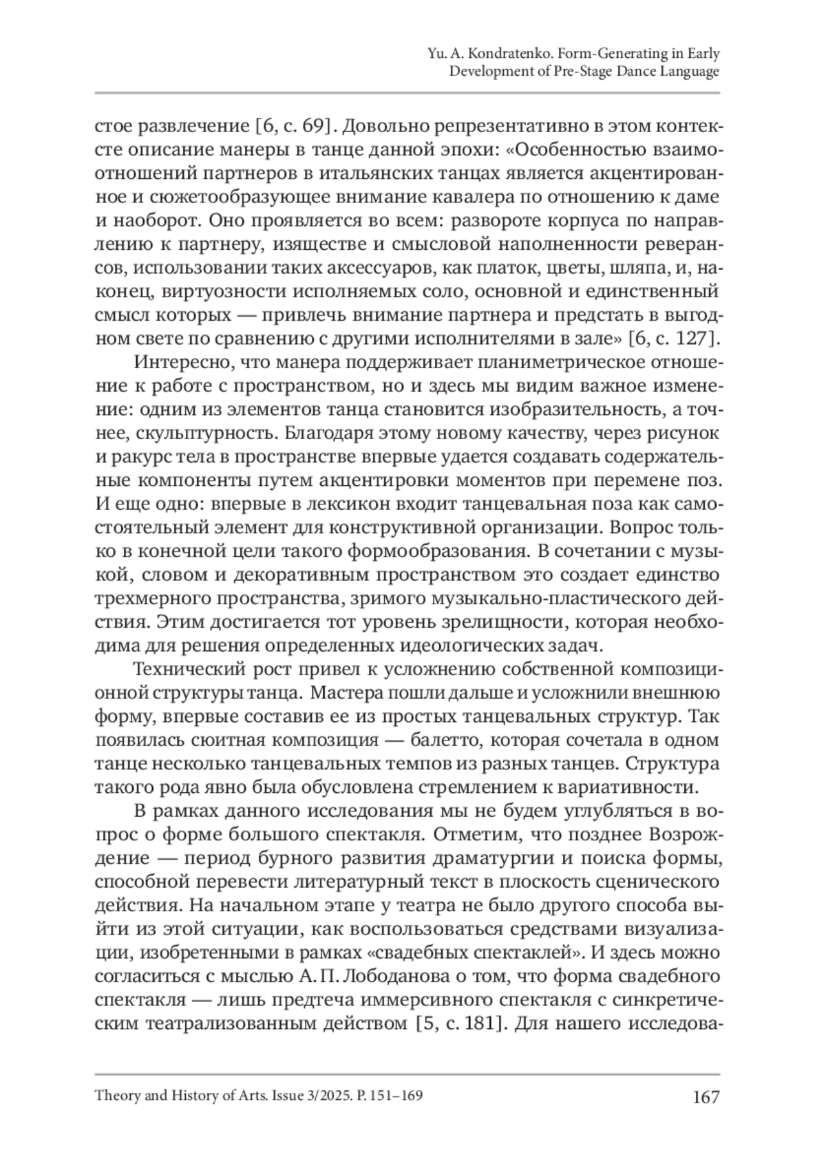 Кондратенко, Ю. А. (2025). Процессы формообразования в языке предсценического танца в ранний период развития. Теория и история искусства, No 3, С. 151–169. DOI 10.55959/MSU2411-0795-2025-3-09