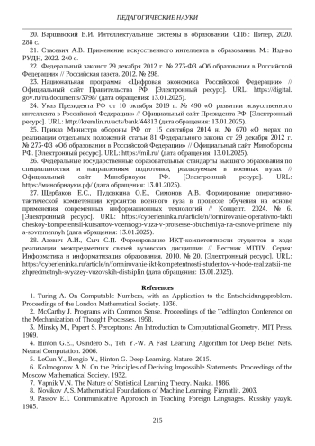 18. Ын Э. Искусственный интеллект в образовании: обещания и препятствия // Наука и образование. 2019. № 6. С. 12-20.