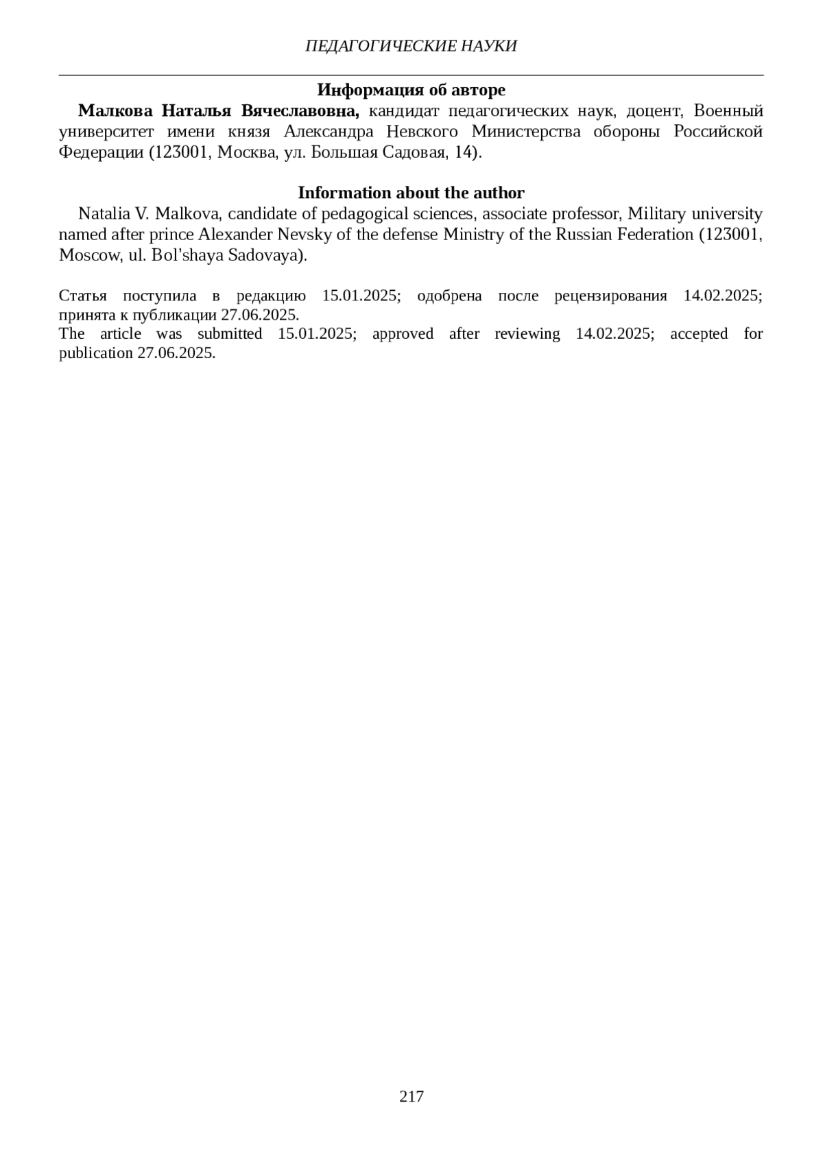 25. Приказ Министра обороны РФ от 15 сентября 2014 н. № 670 “О мерах по реализации отдельных положений статьи 81 Федерального закона от 29 декабря 2012 г. № 273-ФЗ “Об образовании в Российской Федерации” // Официальный сайт Минобороны РФ. [Электронный ресурс]. URL: https://mil.ru/(дата обращения: 13.01.2025).
