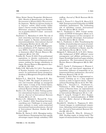 58. Sato A., Panibratov A. 2023. Causal mechanisms of COVID-19 disruptive effects on liability of foreignness and the emergence of new firm-specific advantages. International Business Review 32 (4): 102142. EDN: TSBFFA