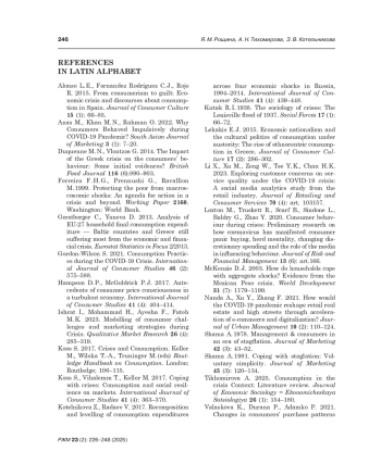 9. Gordon-Wilson S. 2021. Consumption Practices during the COVID-19 Crisis. International Journal of Consumer Studies 46 (2): 575-588.