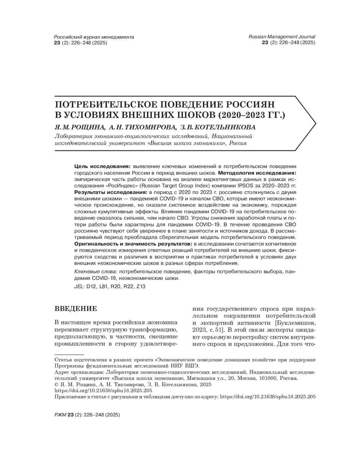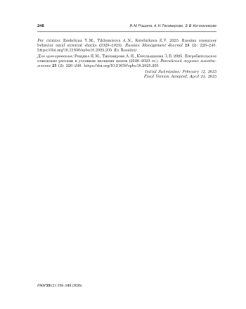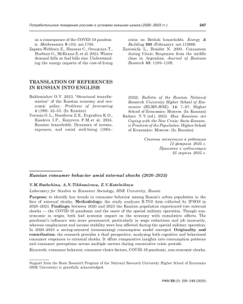 23. Tikhomirova A. 2025. Consumption in the crisis Сontext: Literature review. Journal of Economic Sociology = Ekonomicheskaya Sotsiologiya 26 (1): 154-180.