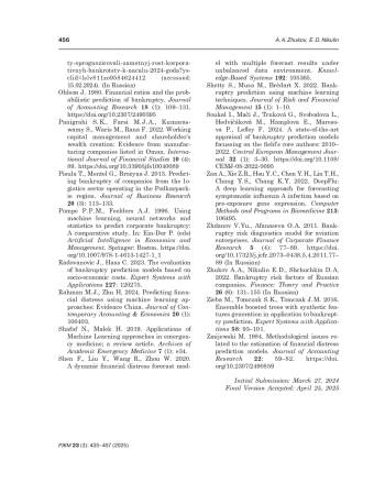 36. Radovanovic J., Haas C. 2023. The evaluation of bankruptcy prediction models based on socio-economic costs. Expert Systems with Applications 227: 120275. EDN: YXOAGJ