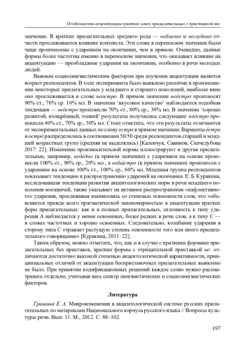 1. Гришина Е. А. Микроизменения в акцентологической системе русских прилагательных по материалам Национального корпуса русского языка // Вопросы культуры речи. Вып. 11. М., 2012. С. 88-102.
