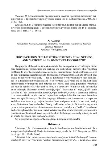 17. Никитин Н. В. Особенности произношения русских предлогов как объект лексикографии // Труды Института русского языка им. В. В. Виноградова. 2023. № 4. Фонетика. С. 273-291. EDN: FRVMLG