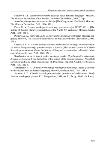 14. Шмелев А. Д. Церковнославянское произношение: проблемы кодификации // Труды Ин-та русского языка им. В. В. Виноградова. 2018. № 3 (17). С. 83-91.