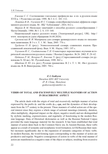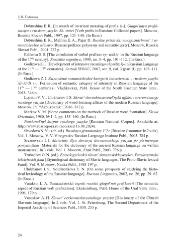 14. Ежкова С. С. Соотношение глагольных префиксов вы- и из- в русском языке XVII в. // Русистика сегодня. 1998. № 3-4. С. 101-112.