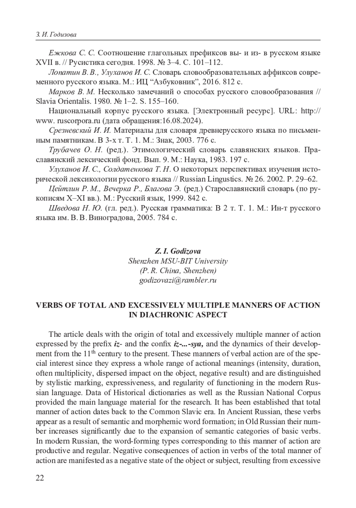 11. Годизова З. И. Становление семантической категории интенсивности в русском языке XI-XVII вв. Владикавказ: Изд-во СОГУ, 2018. 346 с. EDN: OVMGZV