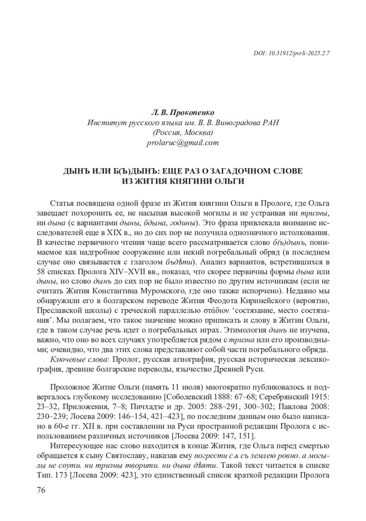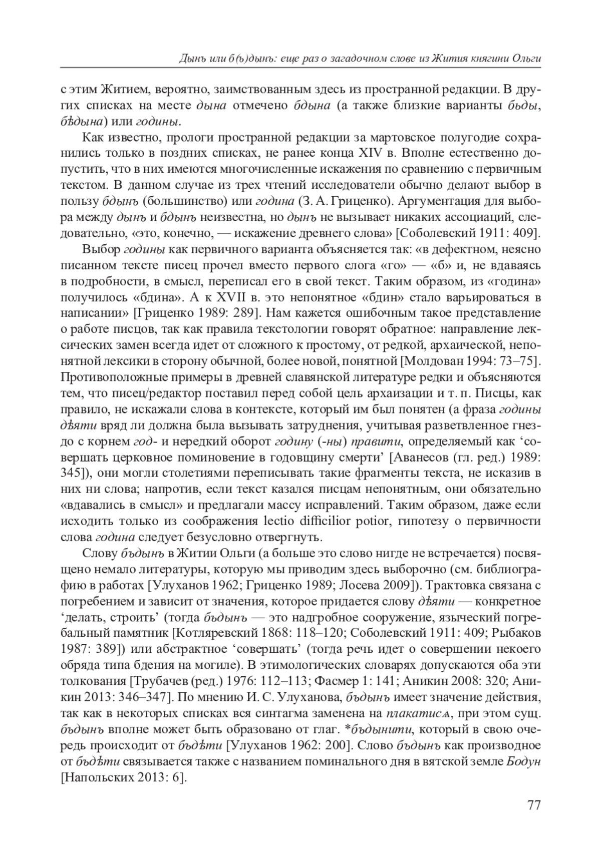 7. Гриценко З. А. Загадочное “бъдынъ” (Об одном разночтении в произведениях о княгине Ольге) // Герменевтика древнерусской литературы. Сборник 1: XI-XVI века. М., 1989. С. 284-290.