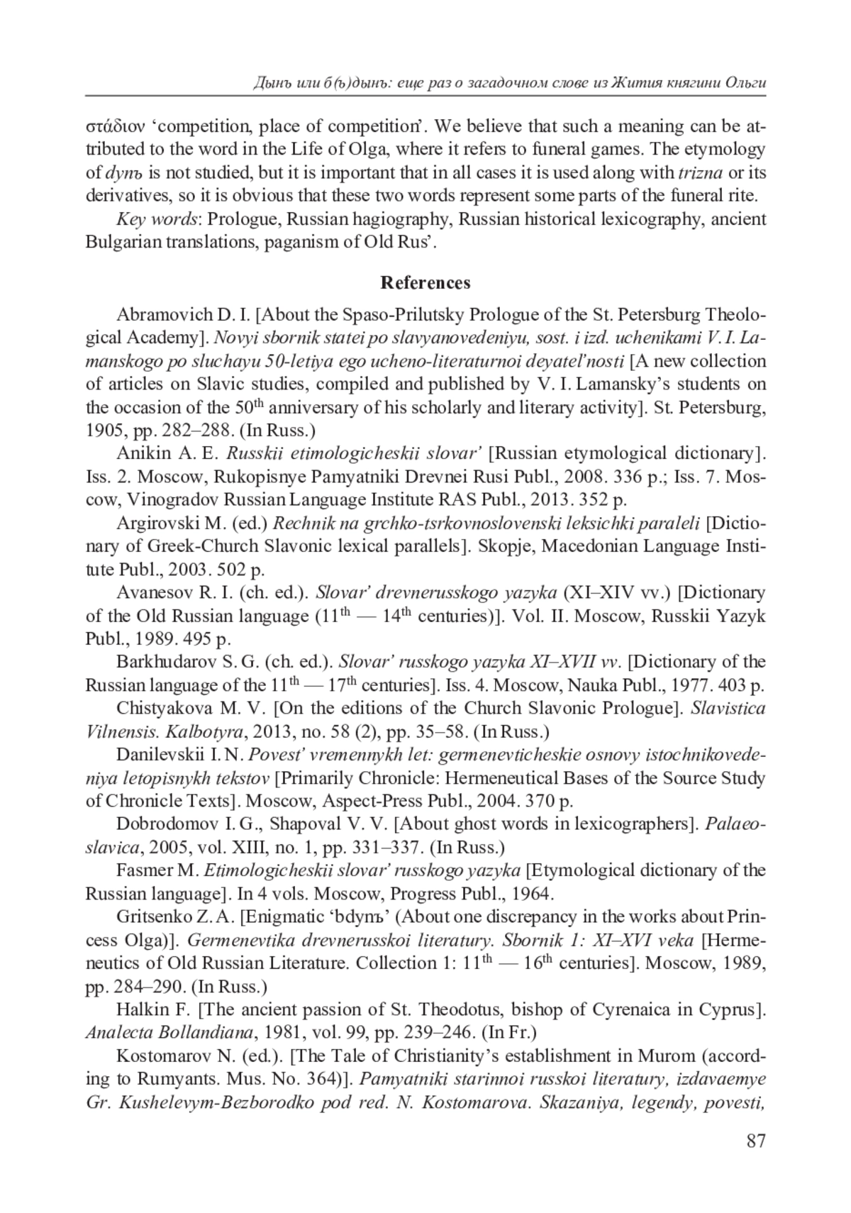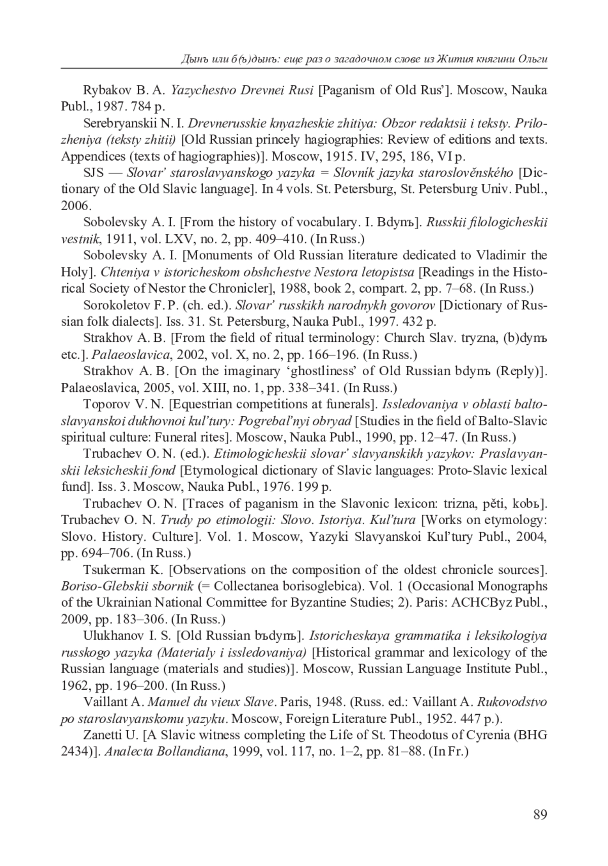 29. Страхов А. Б. О мнимой “призрачности” др.-рус. бдынъ (реплика) // Palaeoslavica. 2005. Vol. XIII. № 1. P. 338-341.
