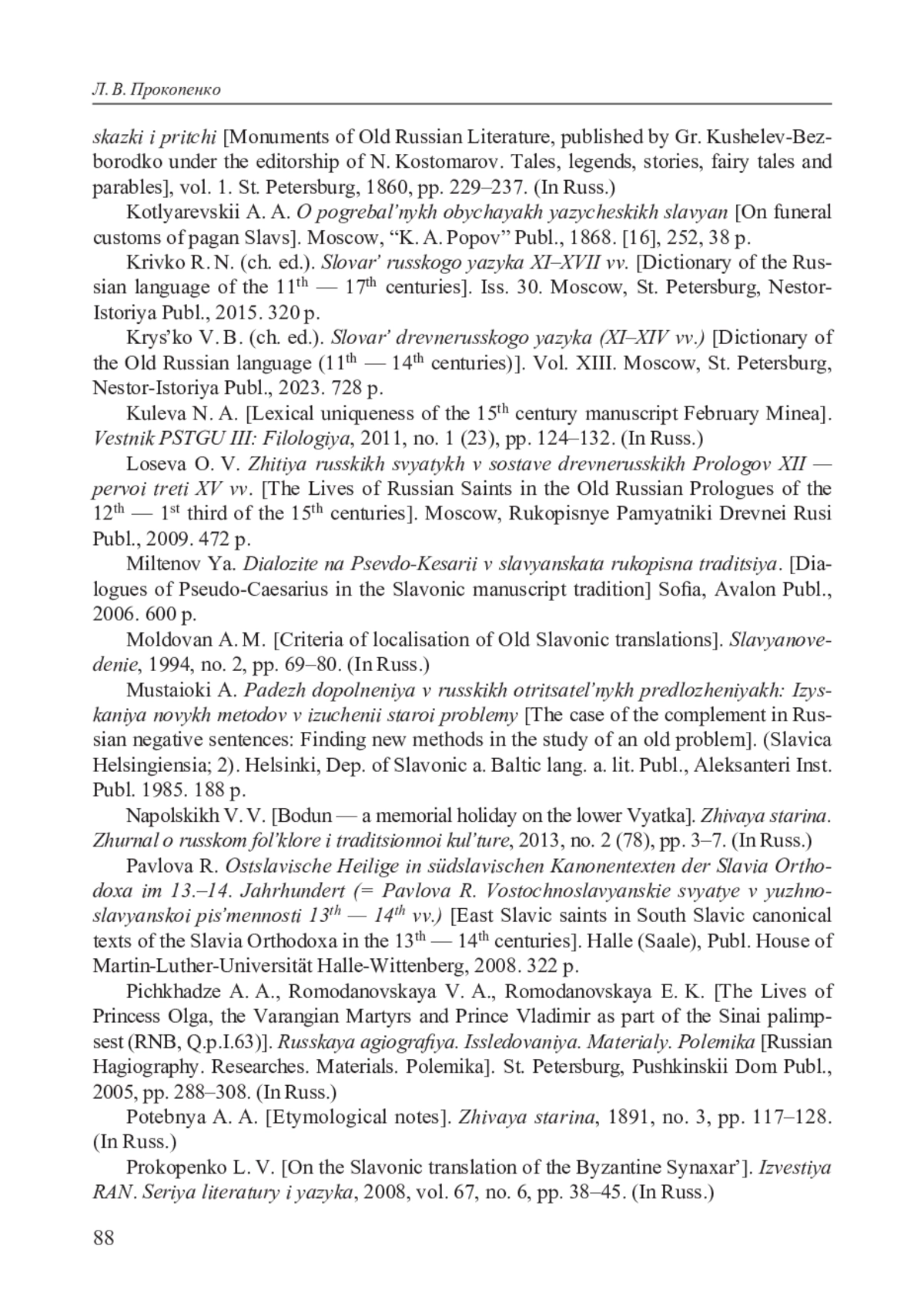 22. Прокопенко Л. В. О славянском переводе византийского Синаксаря // Известия РАН. Серия литературы и языка. 2008. Т. 67. № 6. С. 38-45.