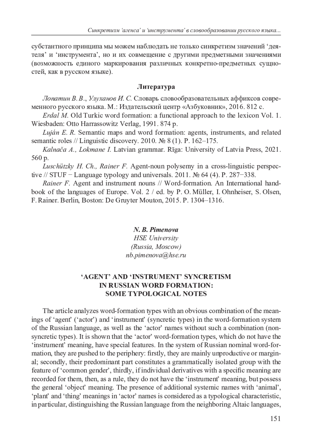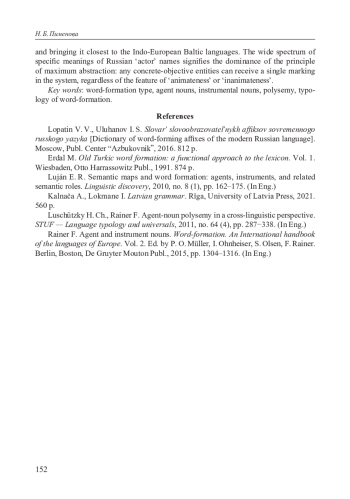 5. Luschützky H. Ch., Rainer F. Agent-noun polysemy in a cross-linguistic perspective // STUF - Language Typology and Universals. 2011. № 64 (4). P. 287-338.