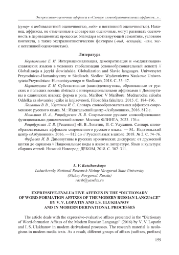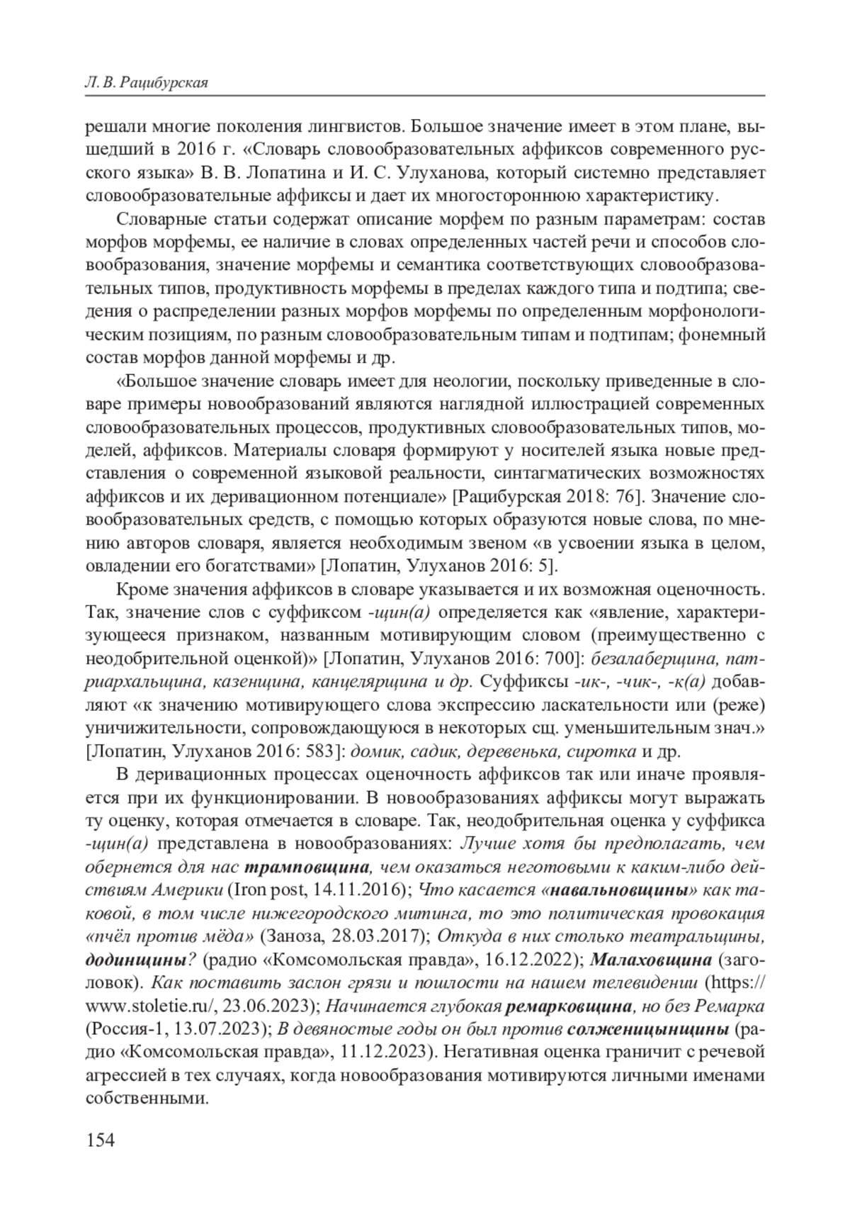 5. Рацибурская Л. В. [Рецензия] “В. В. Лопатин, И. С. Улуханов. Словарь словообразовательных аффиксов современного русского языка. - М.: Издательский центр “Азбуковник”, 2016. - 812 с”. // Русский язык в школе. 2018. № 2. С. 74-76. EDN: YOKRZS