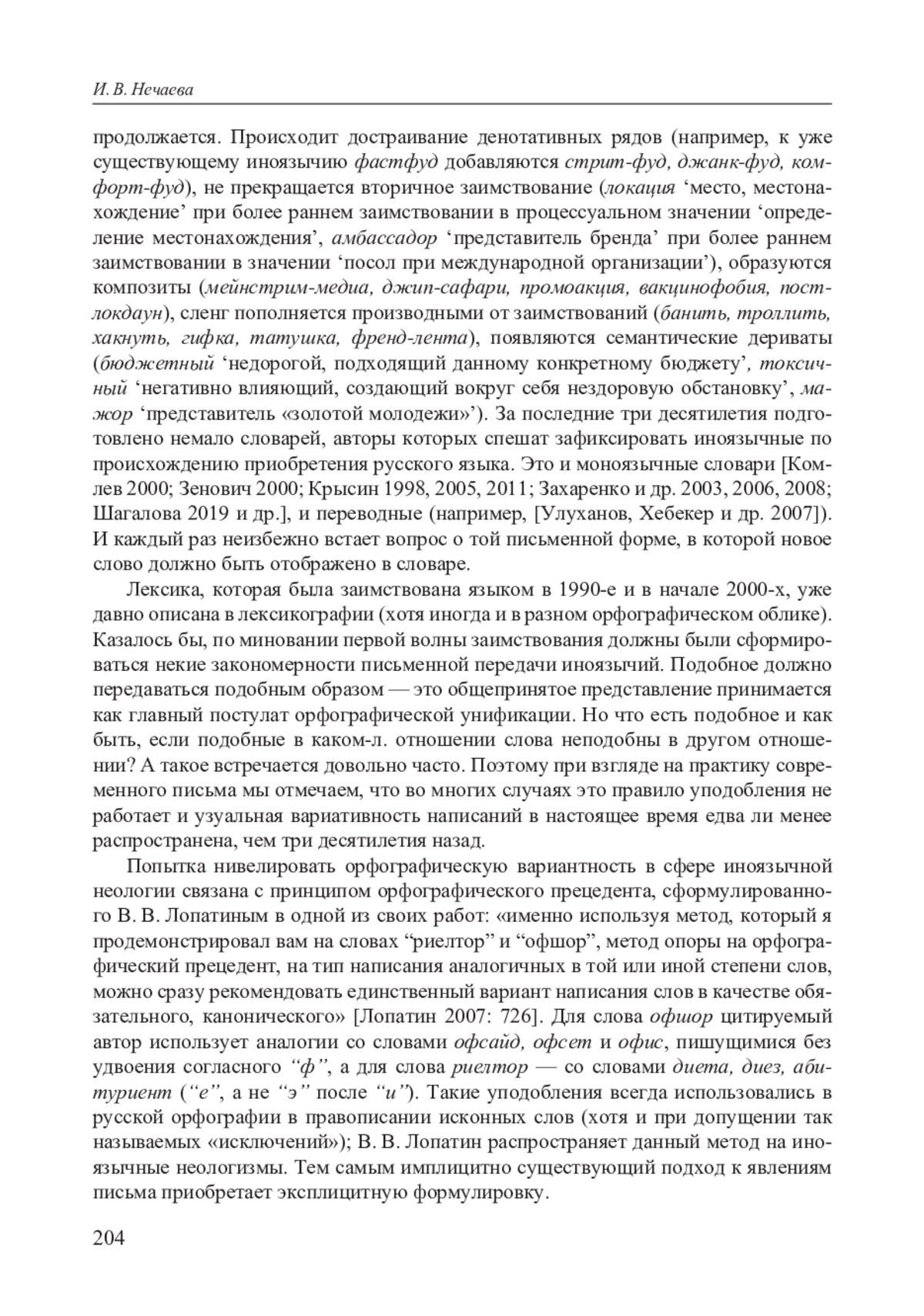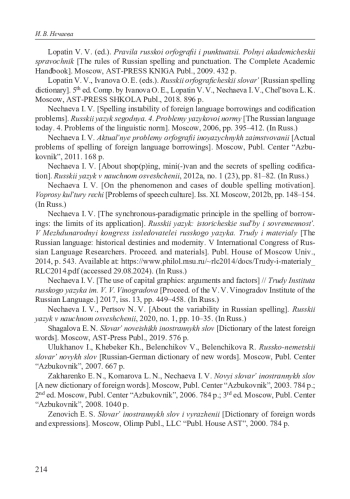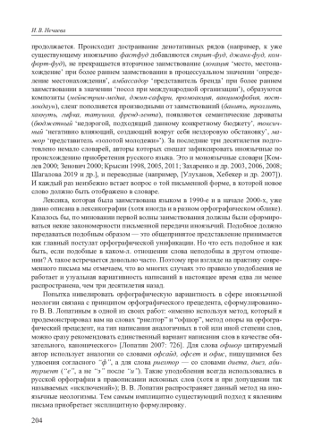 13. Нечаева И. В. Орфографическая нестабильность иноязычных заимствований и проблемы кодификации // Русский язык сегодня. 4. Проблемы языковой нормы. М., 2006. С. 395-412.