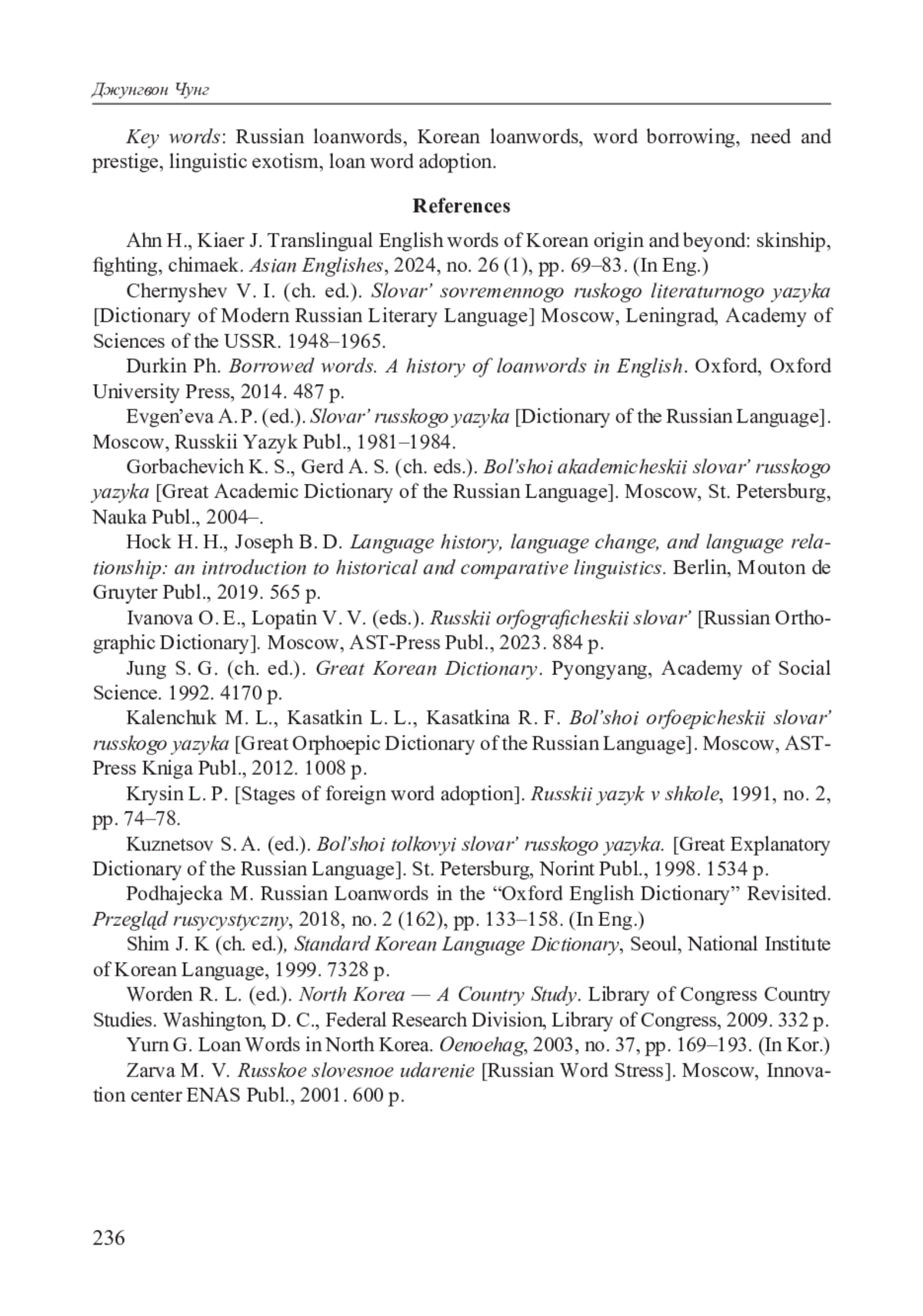 11. Ahn H., Kiaer J. Translingual English words of Korean origin and beyond: skinship, fighting, chimaek // Asian Englishes. 2024. No. 26 (1). P. 69-83. EDN: TGGWUH