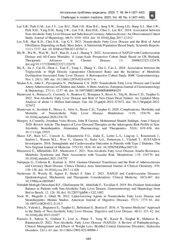 17. Kasper P., Martin A., Lang S., Kutting F., Goeser T., Demir M., Steffen H.M. 2021. NAFLD and Cardiovascular Diseases: A Clinical Review. Clinical Research in Cardiology. 110(7): 921-937. DOI: 10.1007/s00392-020-01709-7