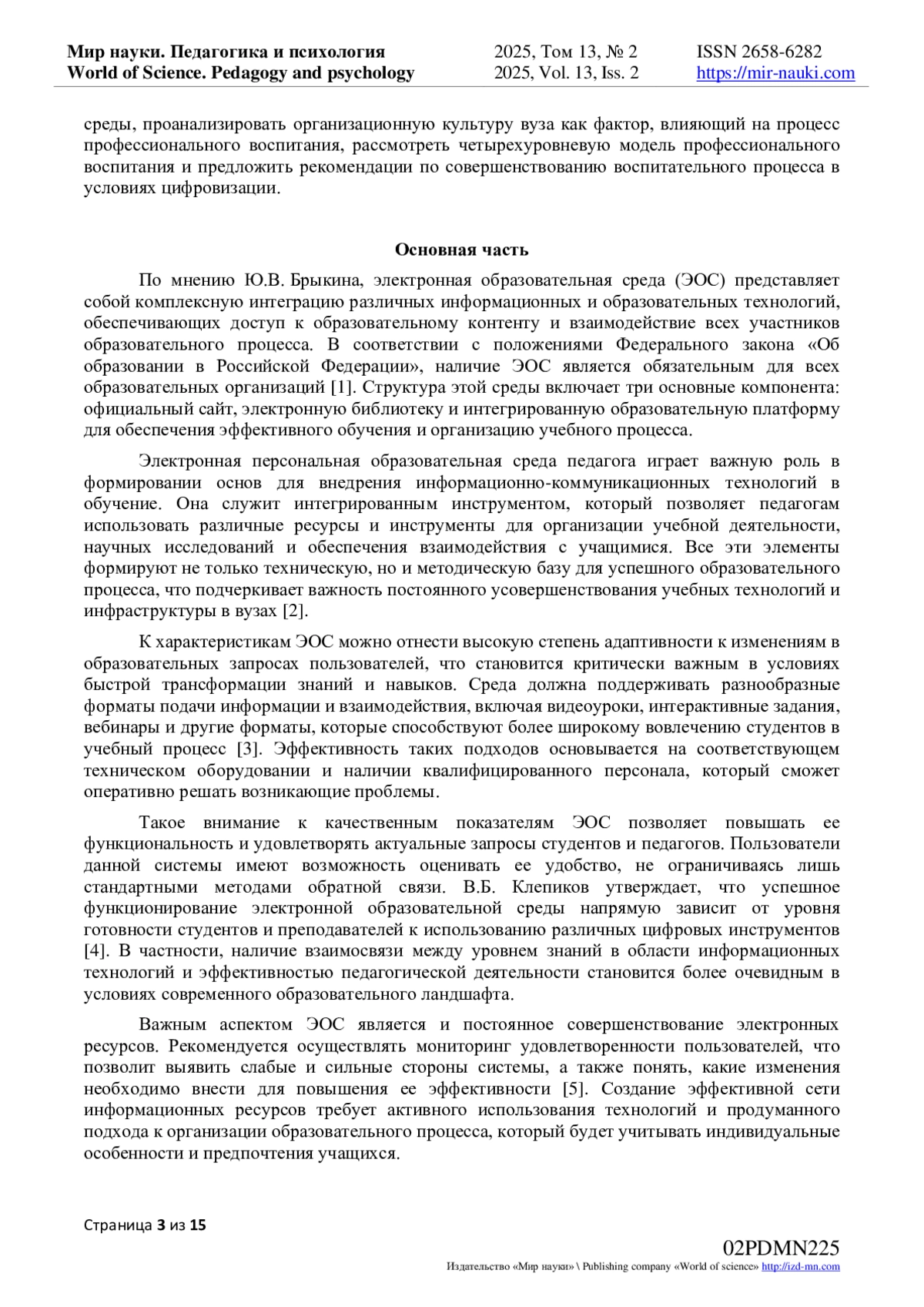 2. Клепиков, В.Б. Характеристика электронной персональной образовательной среды педагога / В.Б. Клепиков // Дискуссия. - 2014. - № 8(49). - С. 136-140. EDN: SWEUOL