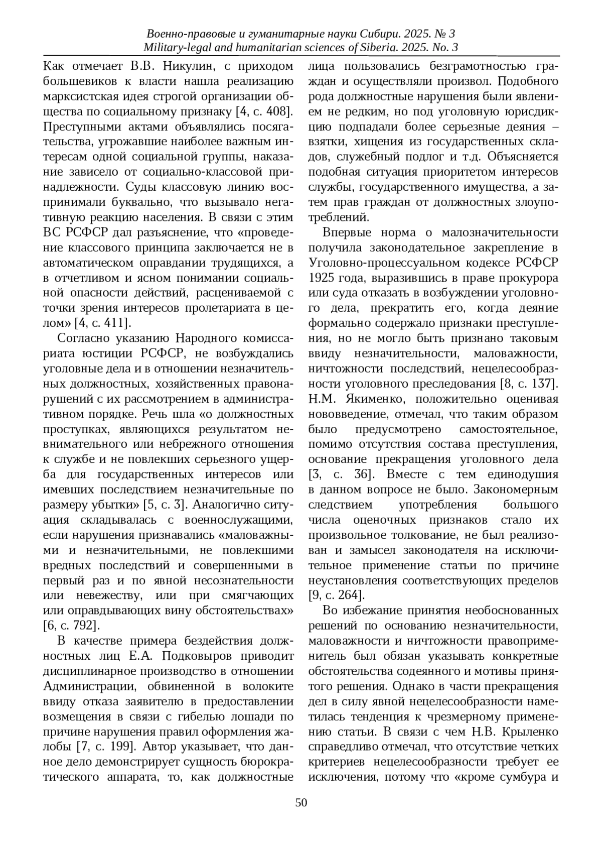 3. Якименко Н.М. Малозначительность деяния в истории советского уголовного права // Известия высших учебных заведений. Правоведение. 1983. № 1. С. 34-44. EDN: TZKEHJ