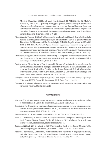 26. Bahkou A. Kitāb al-Kāfī fi-l-Maʿnā aš-Šāfī (The Complete Book of the Proper Meaning): The Christian Apology of Gerasimus // Parole de l’Orient. 2009. Vol. 34. P. 309-343.