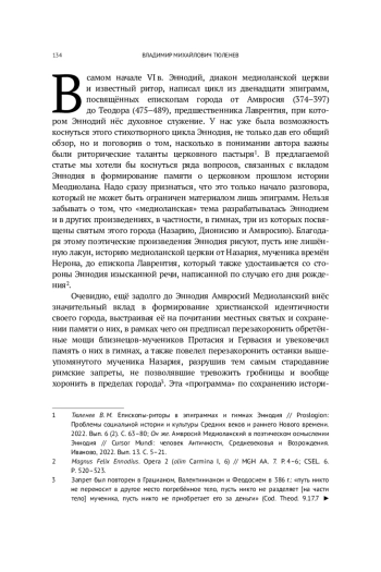 7. Тюленев В. М. Епископы-риторы в эпиграммах и гимнах Эннодия // Proslogion: Проблемы социальной истории и культуры Средних веков и раннего Нового времени. 2022. Вып. 6 (2). С. 63-80. EDN: AGVXJT