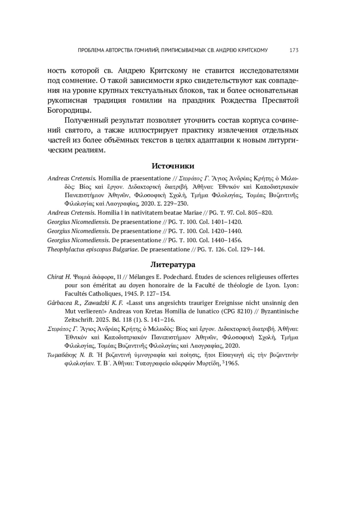 8. Gârbacea R., Zawadzki K. F. “Lasst uns angesichts trauriger Ereignisse nicht unsinnig den Mut verlieren!” Andreas von Kretas Homilia de lunatico (CPG 8210) // Byzantinische Zeitschrift. 2025. Bd. 118 (1). S. 141-216. EDN: QXNXUV