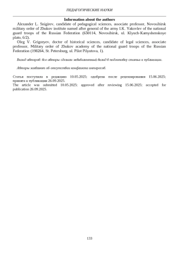 11. Литвиненко Н.М., Григорьев О.В. Современные технологии обучения в системе вузов Федеральной службы войск национальной гвардии // Научный альманах. 2016. № 7-2 (21). С. 123-127. EDN: WKTLBL