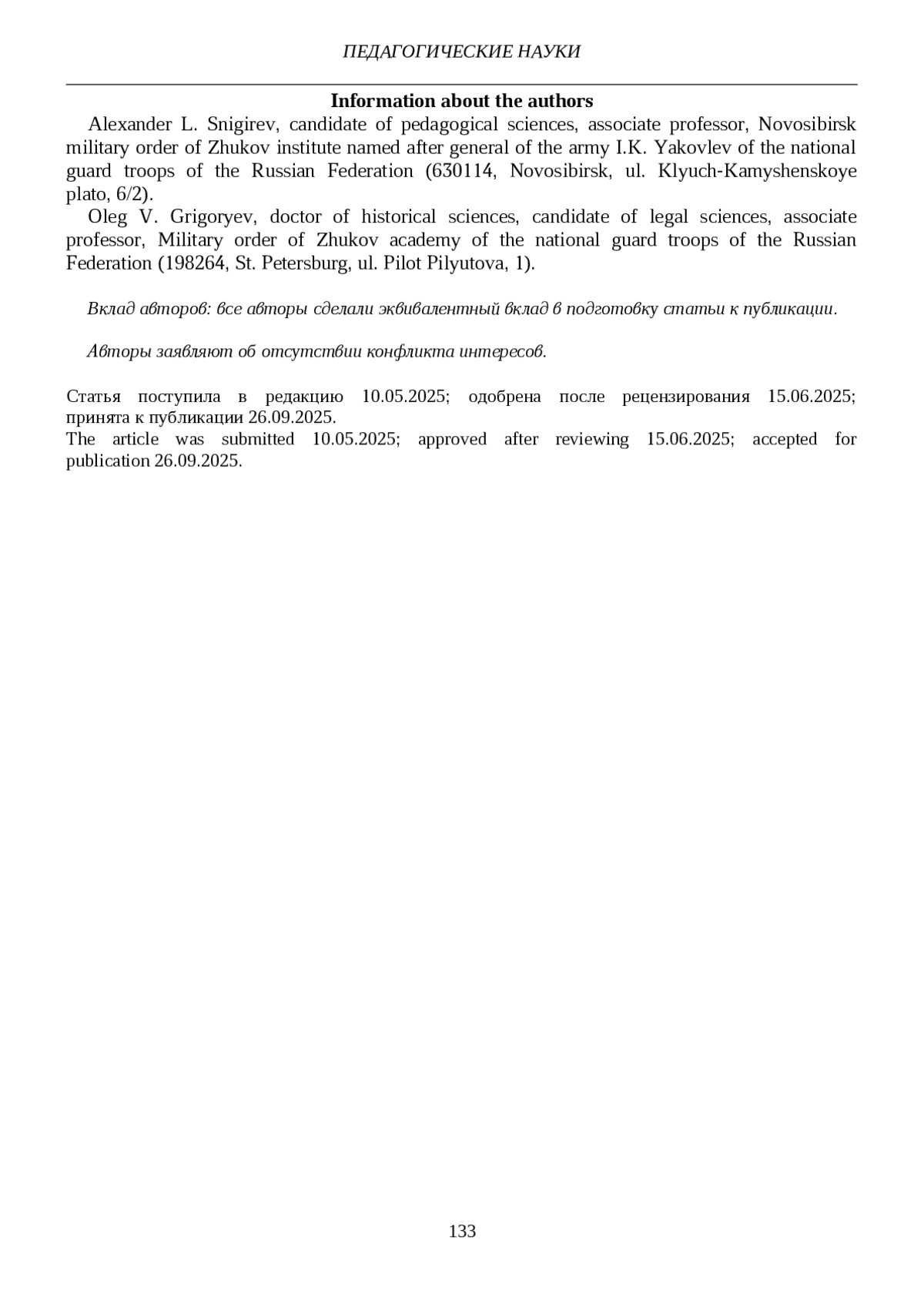 10. Головинский А.А., Саврий А.Н., Локтионов В.А. Научная деятельность курсантов ВНОК по защите исторической памяти о традиционных духовно-нравственных ценностях воинского служения / Личность курсанта как поле смыслового контента в сфере воинской деятельности: сб. мат-ов науч.-метод. конф. Петергоф, 2024. С. 112-120. EDN: VKMOIB