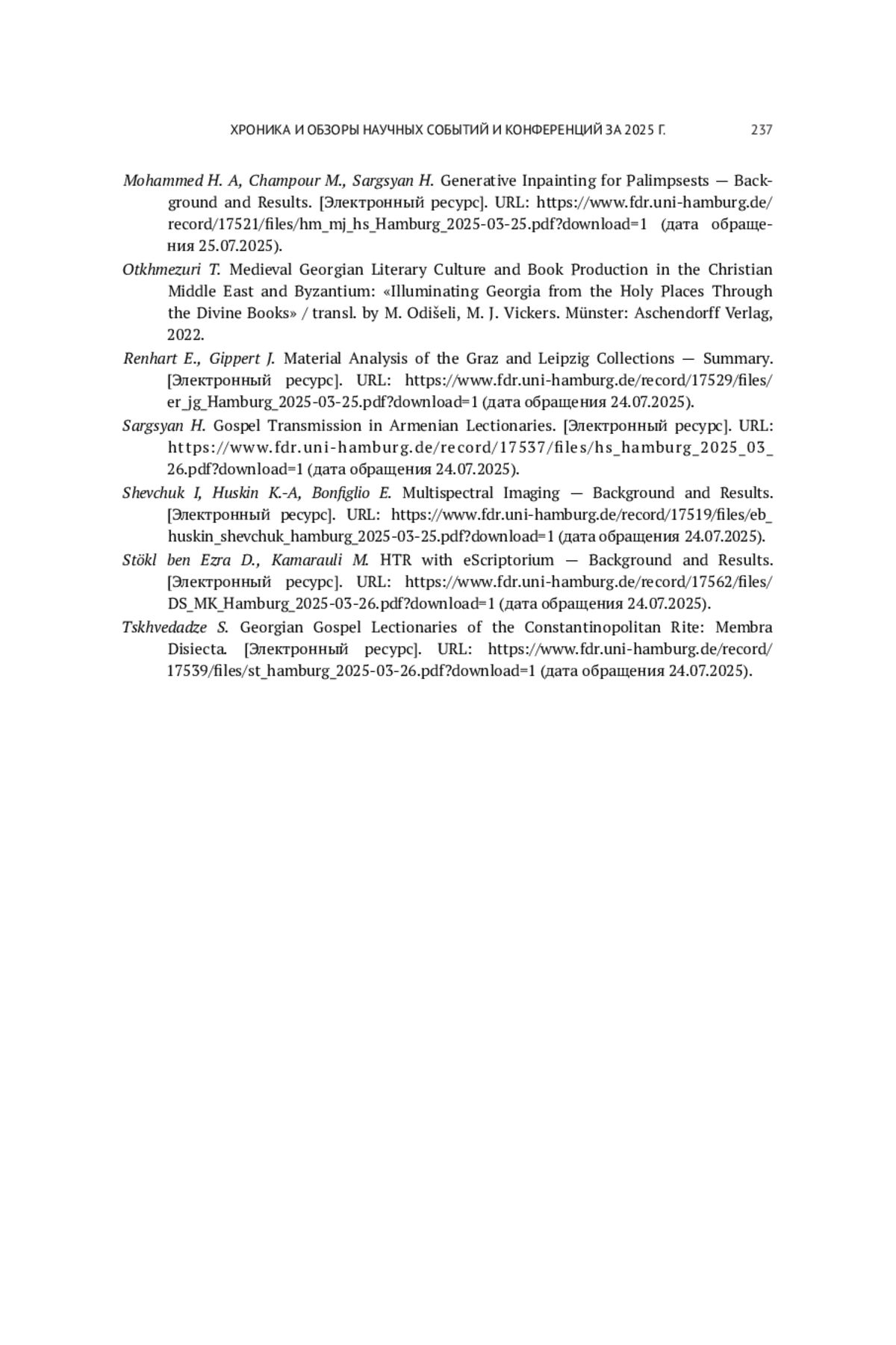 17. Kvirkvelia E. Palimpsested Gospels: The History of the Georgian Text Translation. [Электронный ресурс]. URL: https://www.fdr.uni-hamburg.de/record/17531/ les/EK-hamburg- 2025-03-26.pdf?download=1 (дата обращения 24.07.2025).