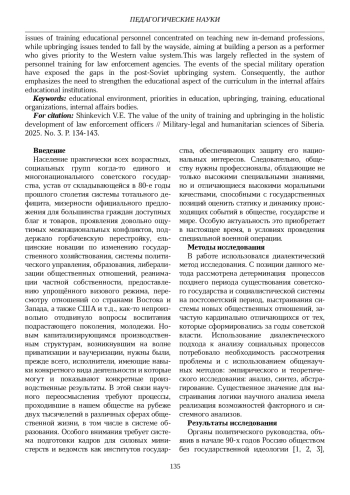 В данной статье автор, рассматривая состояние подготовки сотрудников органов внутренних дел в ведомственных образовательных учреждениях, обращает внимание на проблему фактической автономности в современной образовательной системе двух ее основных слагаемых: воспитания и обучения. Указываются причины данной действительности, которые стали следствием радикальных изменений постсоветского периода практически во всех сферах жизнедеятельности общества и государства и негативных последствий поспешной либерализации общественной жизни, новаций в политике, экономике, образовании и т. д. На первое место при подготовке кадров в образовательных организациях стали выдвигать вопросы обучения новым востребованным профессиям, воспитание отошло на второй план, основной его целью стало формирование человека как исполнителя, отдающего приоритет, прежде всего, западной системе ценностей. Во многом это проявилось и в системе подготовки кадров для органов внутренних дел. События, связанные со специальной военной операцией, актуализировали пробелы воспитания постсоветского периода. В этой связи автором обращено внимание на повышение воспитательной составляющей учебных дисциплин, изучаемых в образовательных организациях органов внутренних дел.