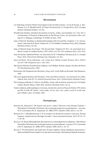 24. Kavvadas N. On the Relation Between the Eschatological Doctrine of Isaac of Nineveh and Theodore of Mopsuestia // Studia Patristica. 2010. Vol. 45. P. 245-251.