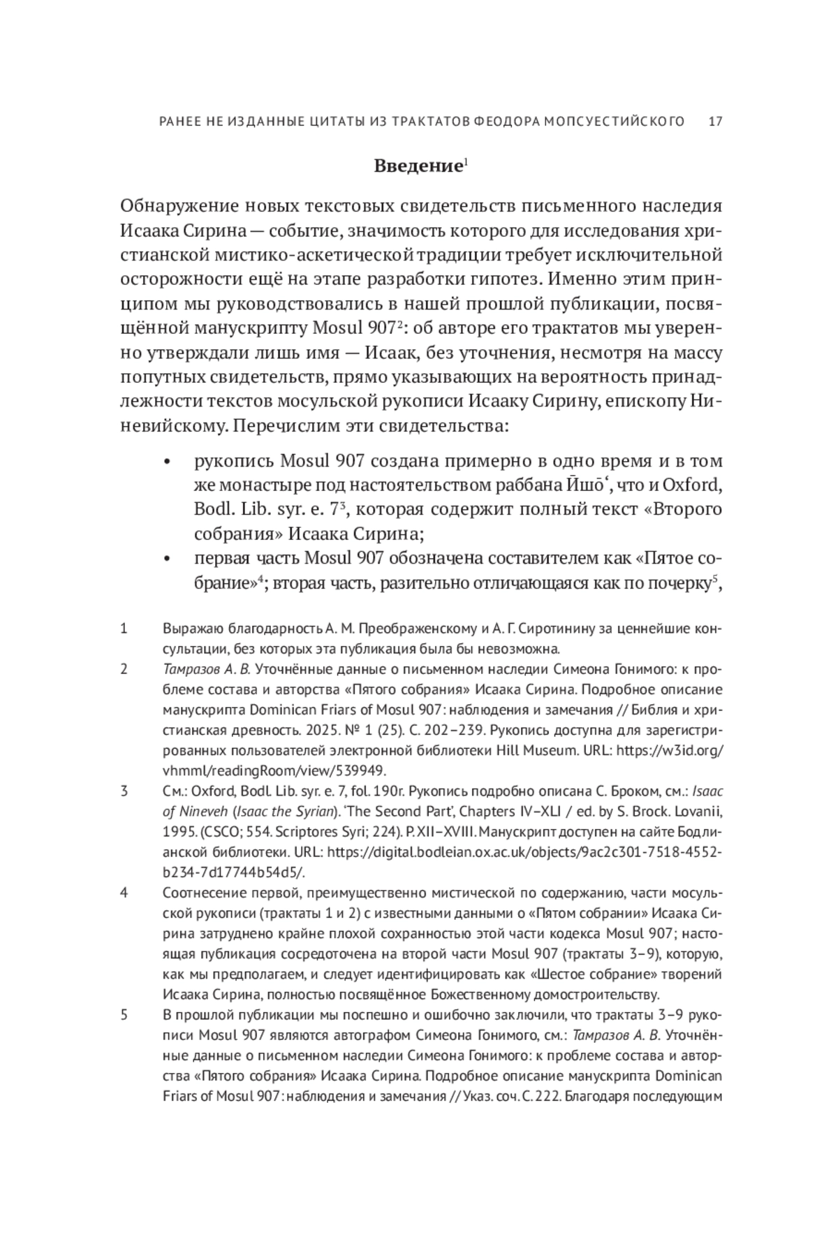 21. Тамразов А. В. Уточнённые данные о письменном наследии Симеона Гонимого: к проблеме состава и авторства “Пятого собрания” Исаака Сирина. Подробное описание манускрипта Dominican Friars of Mosul 907: наблюдения и замечания // Библия и христианская древность. 2025. № 1 (25). С. 202-239. EDN: IPPPFY